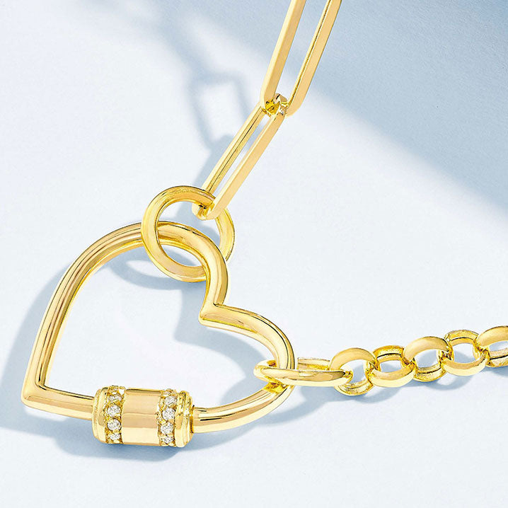 Two Tone Hollow 50/50 Paperclip Necklace 14K Gold