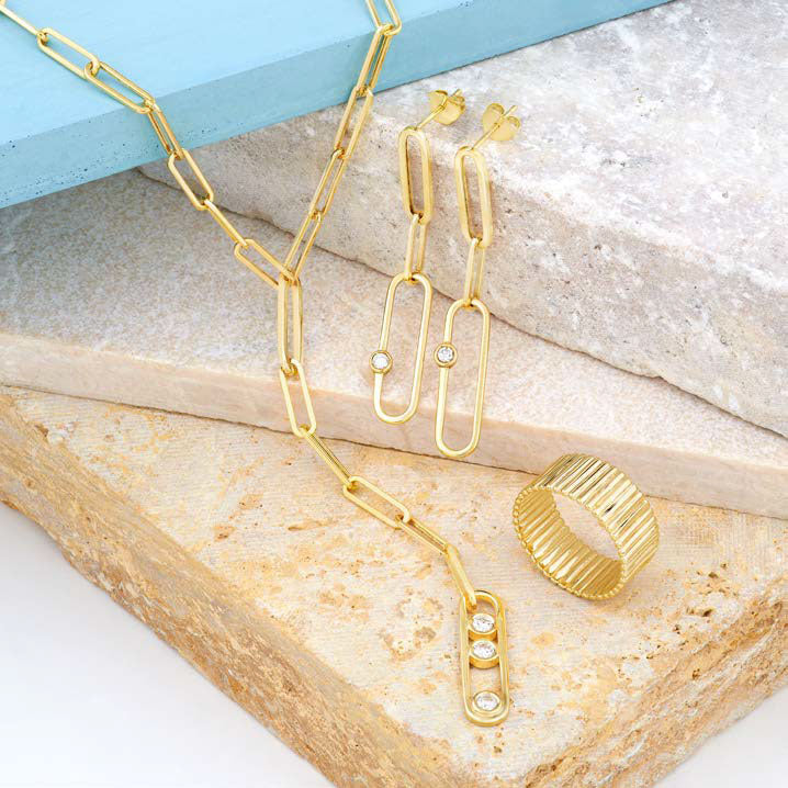 Two Tone (3+1) Paperclip Brushed Polished Chain 14K Gold