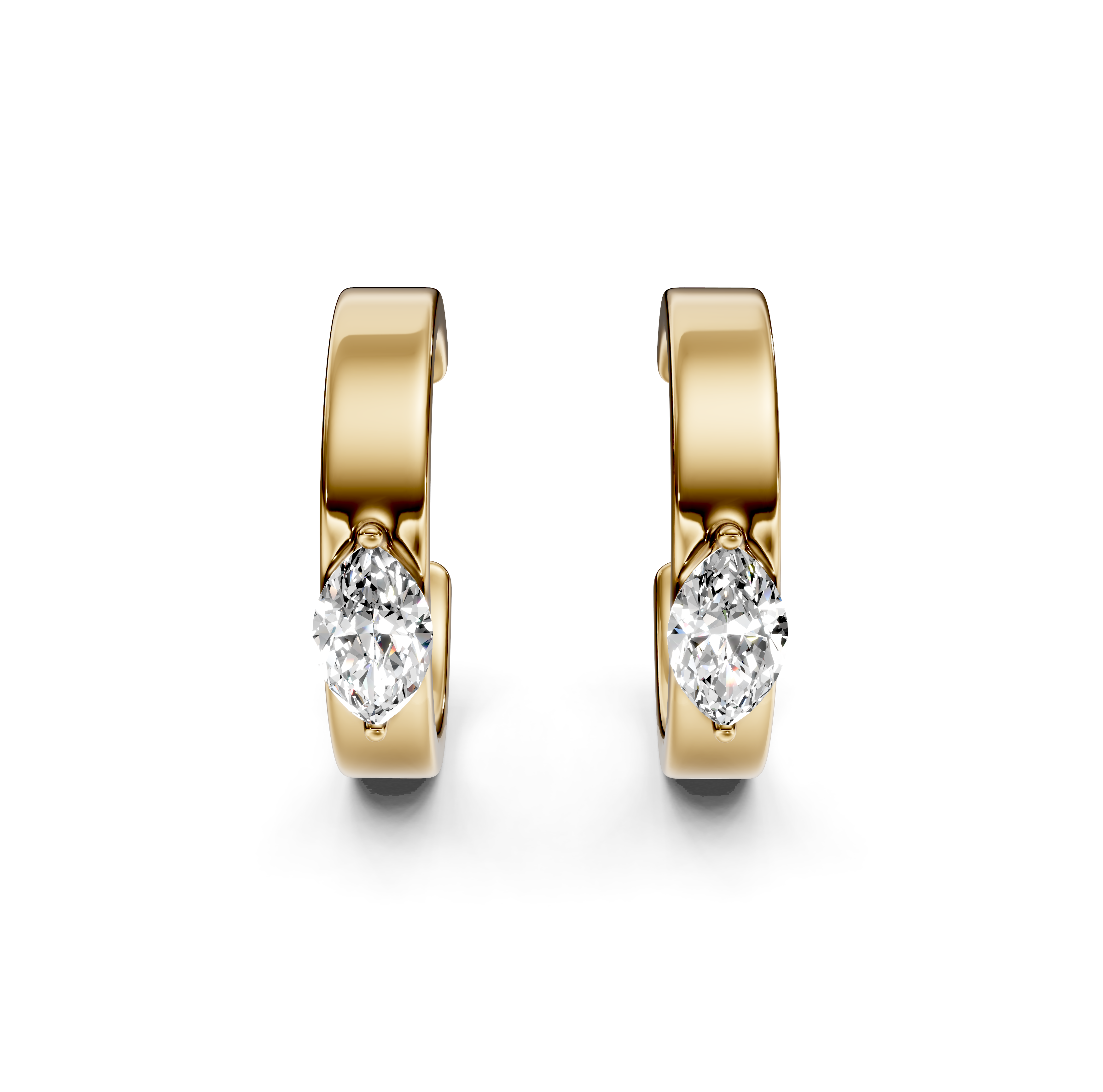 These Marquise Cut Diamond Huggie Earrings showcase a single marquise diamond set on a polished gold hoop for a minimalist, modern look. The sleek, elongated stone adds just enough sparkle without overwhelming the clean lines of the huggie style.