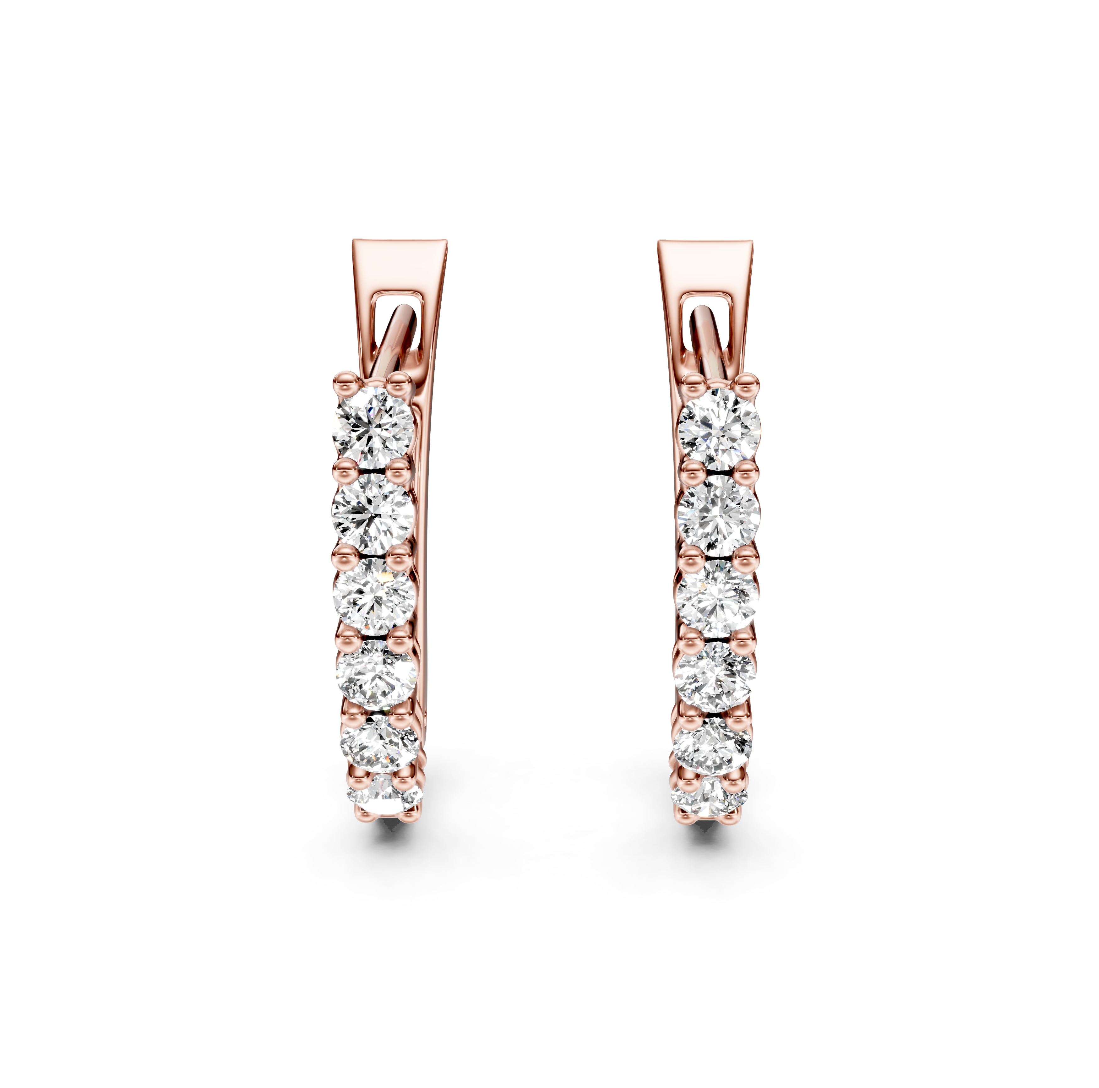 These hoop earrings feature a row of round cut diamonds along the front, offering just the right amount of sparkle without being too much. The sleek hinged design sits close to the ear for a polished, modern look that's easy to wear every day. They're the perfect size when you want to wear a bigger statement piece than studs but not as bold as a traditional, wider hoop.