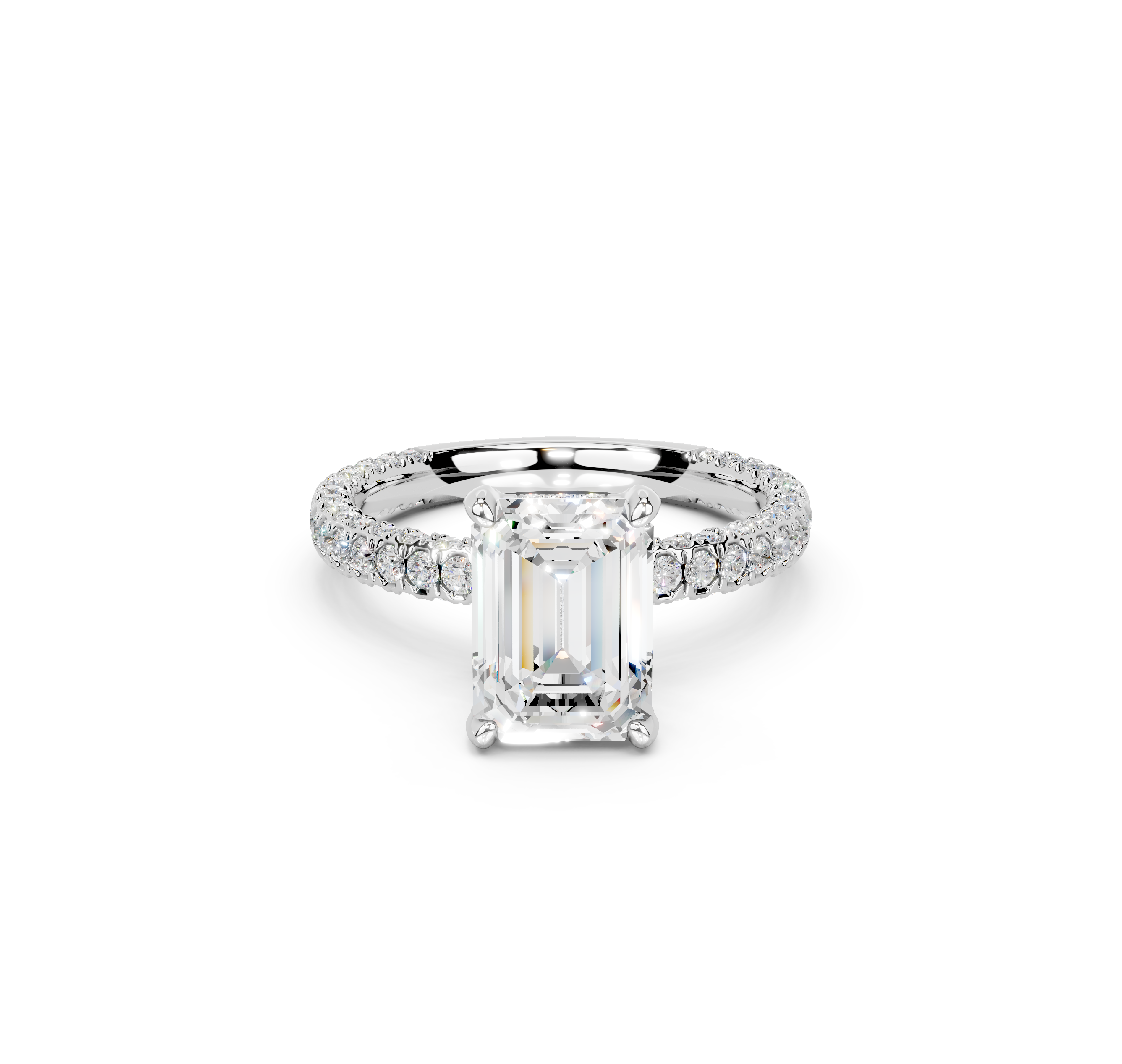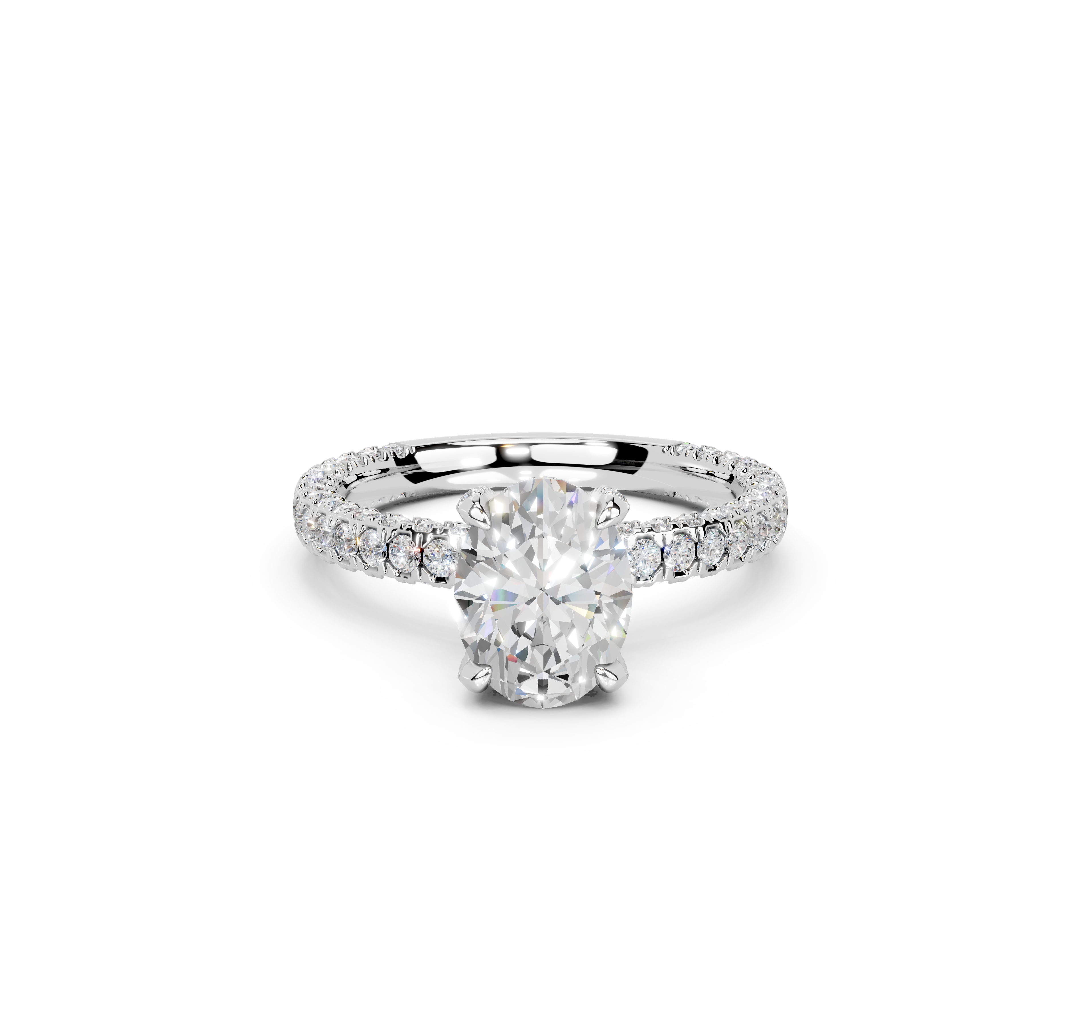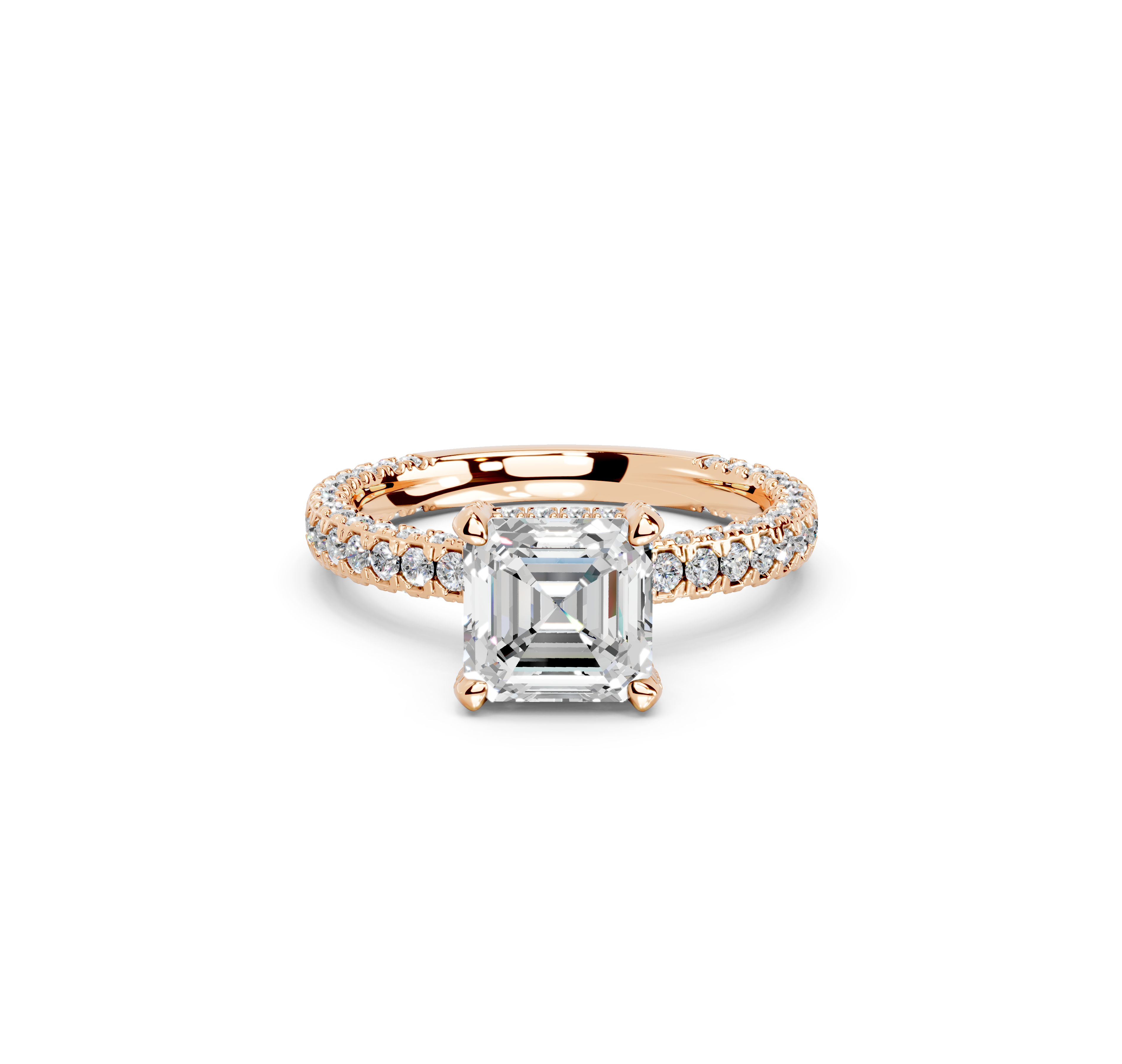 Shimmering from every angle, the Alaya Micro Pavé Hidden Halo Engagement Ring makes your love shine bright. Delicate micro pavé diamonds grace the band's top and sides, while a dazzling hidden halo beneath the center stone adds secret brilliance.