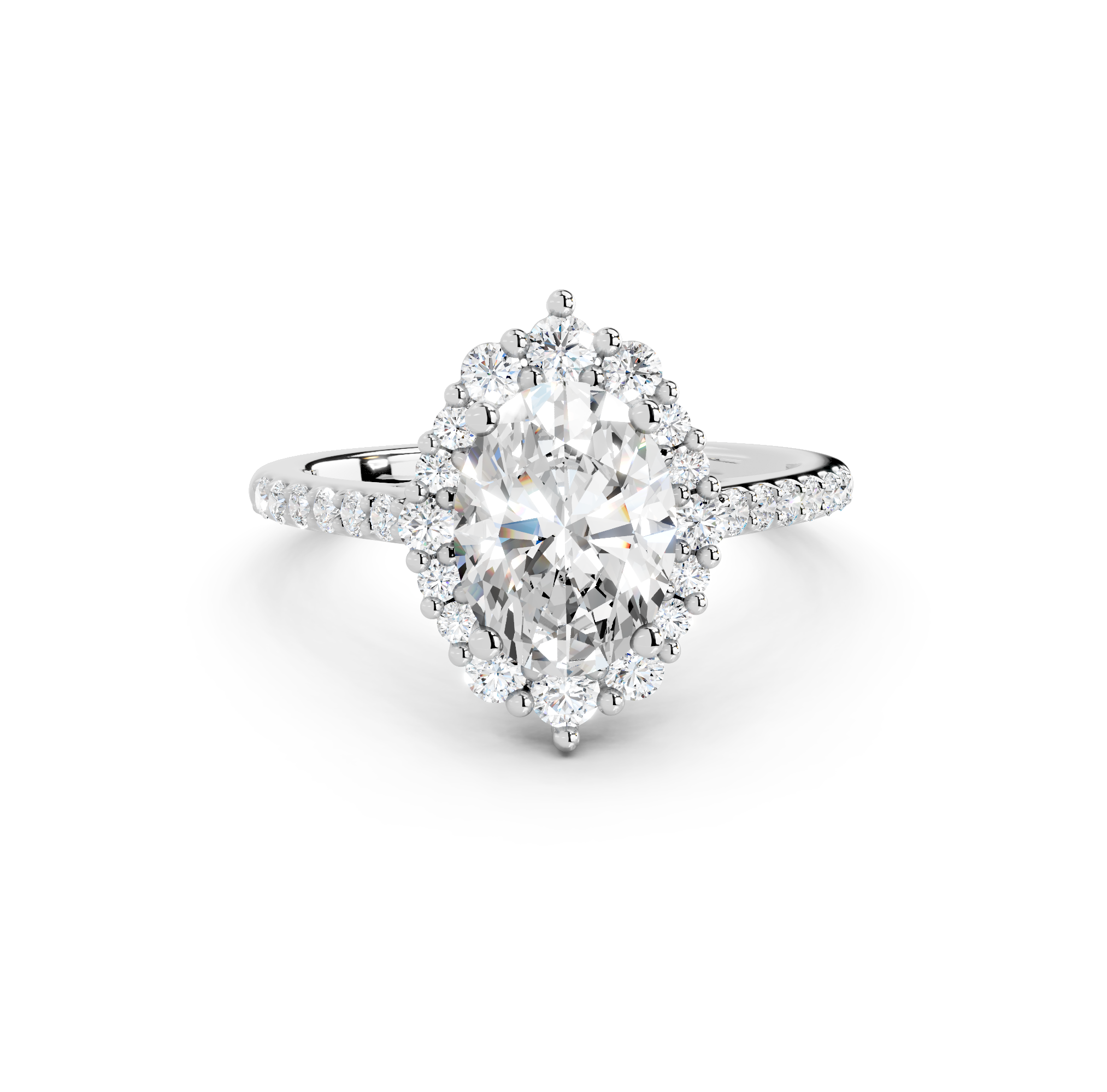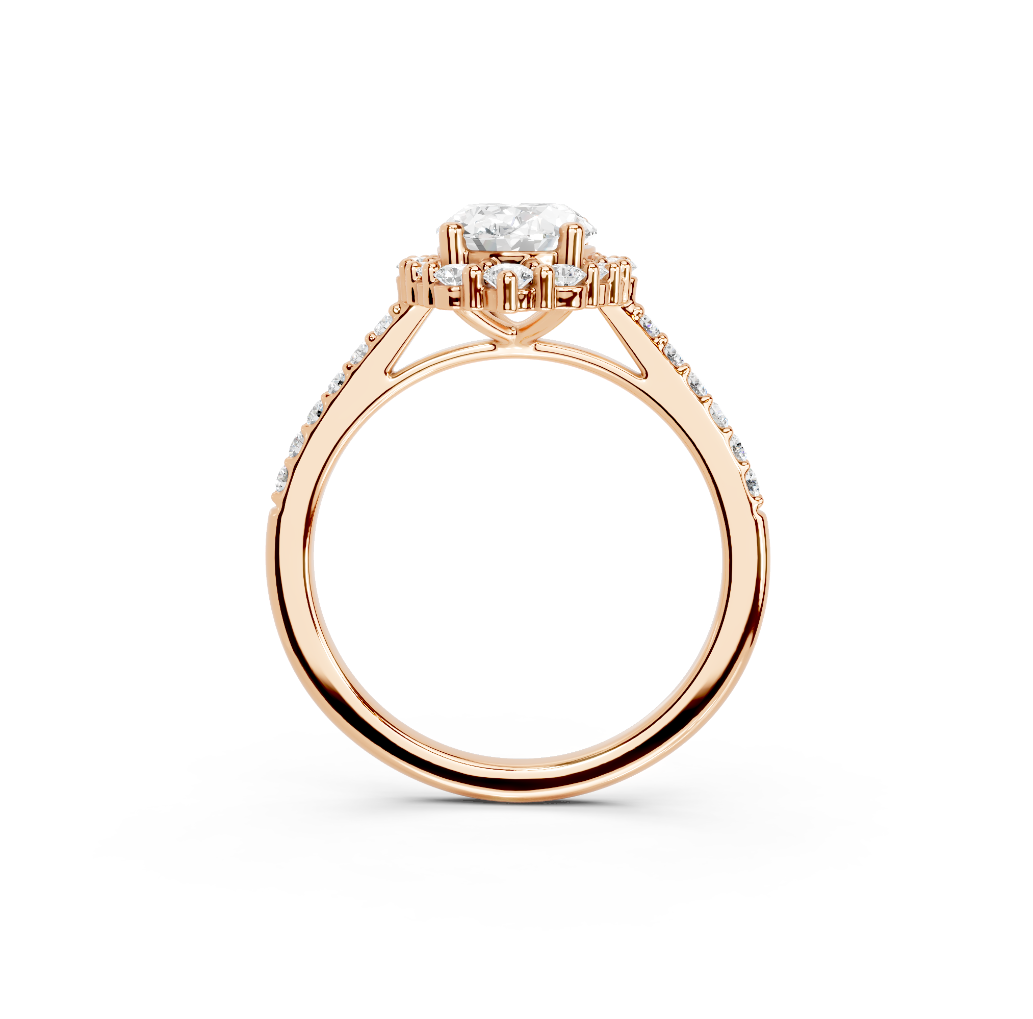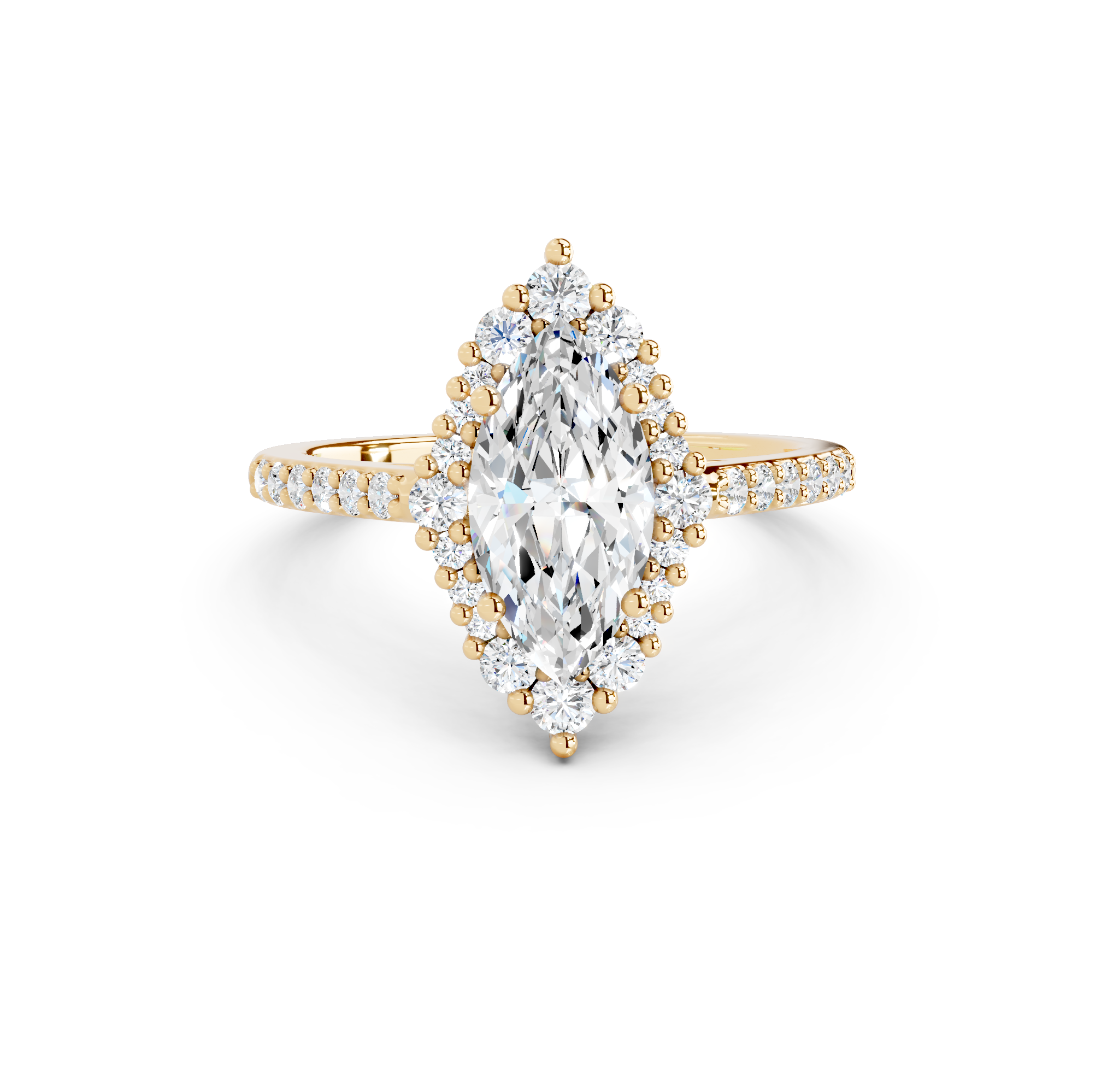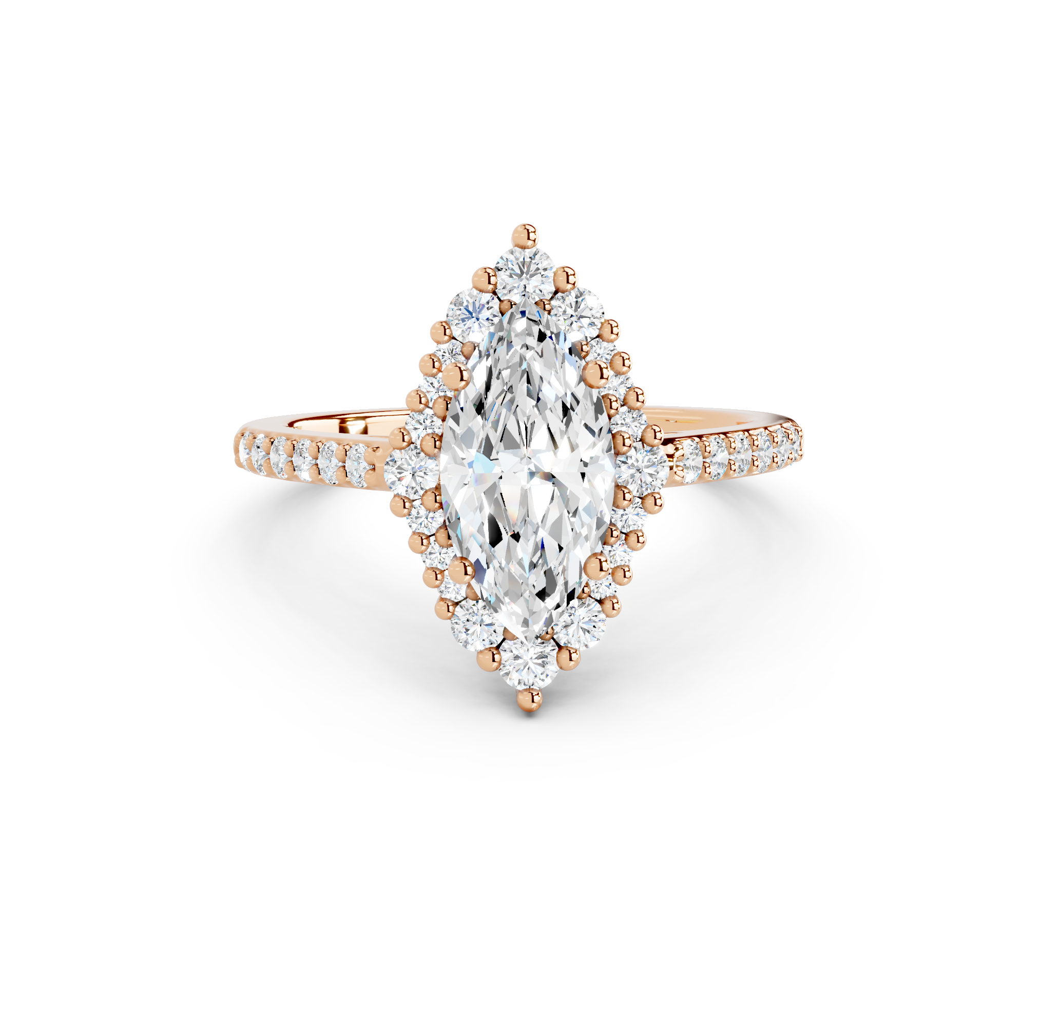 Meet Alina, a ring that redefines elegance with her romantic silhouette. This Pavé Marquise-Shaped Halo Cathedral Engagement Ring is designed for a love as unique as its form.