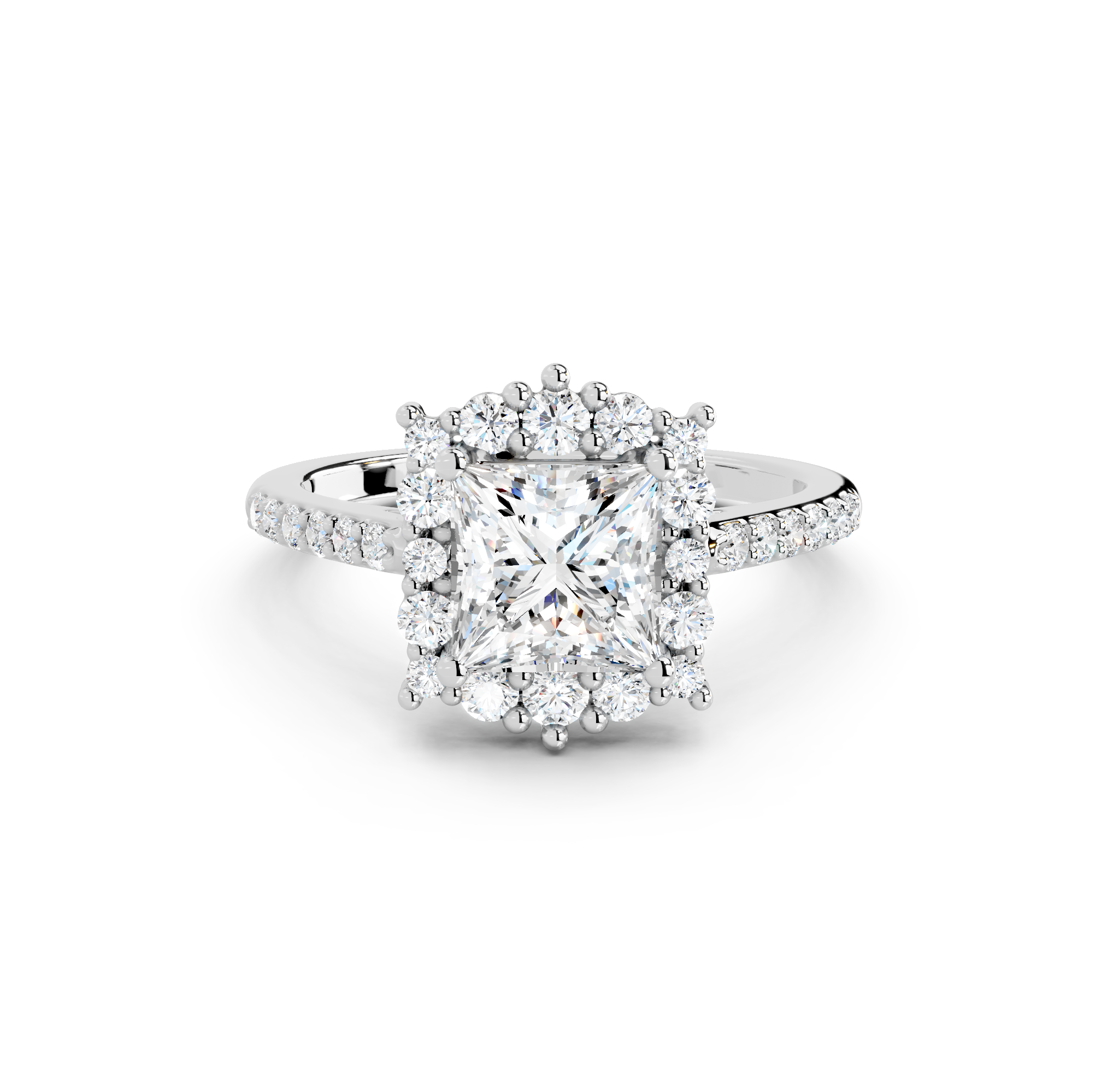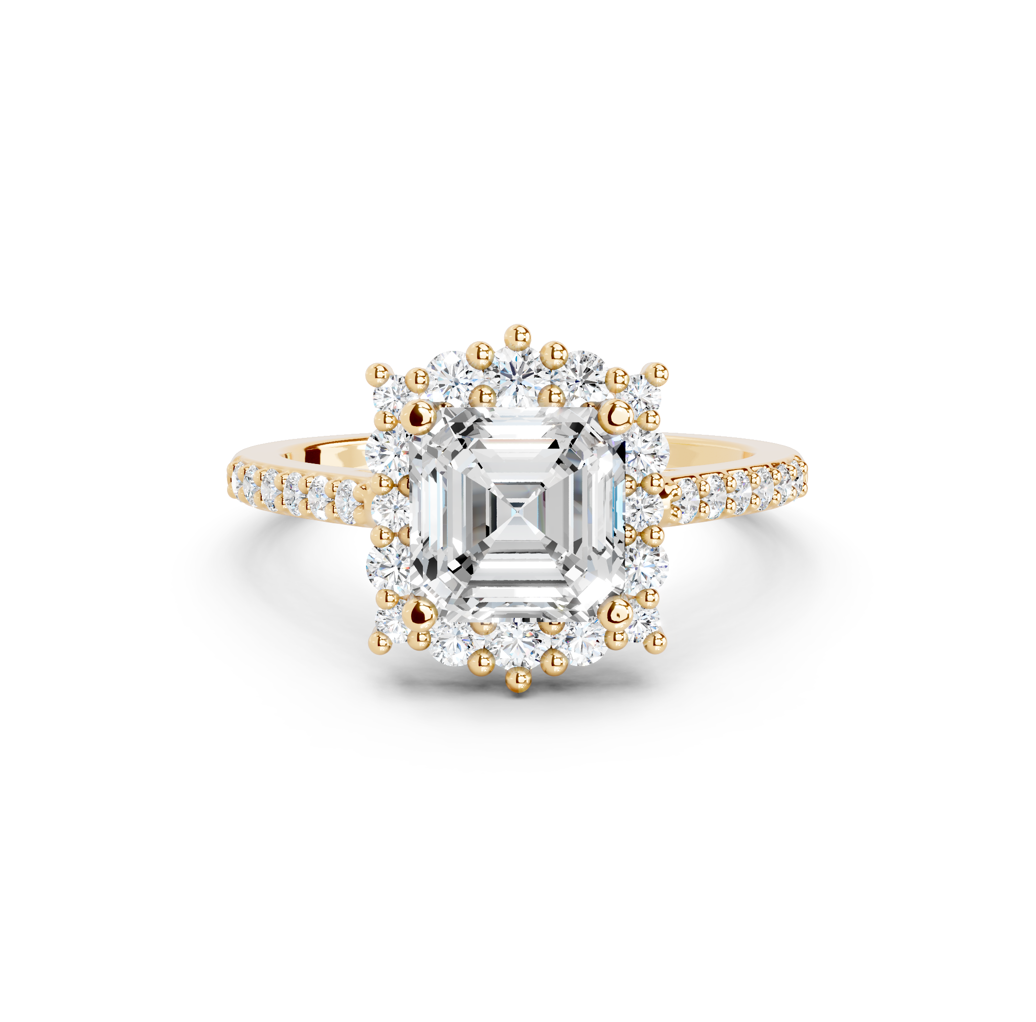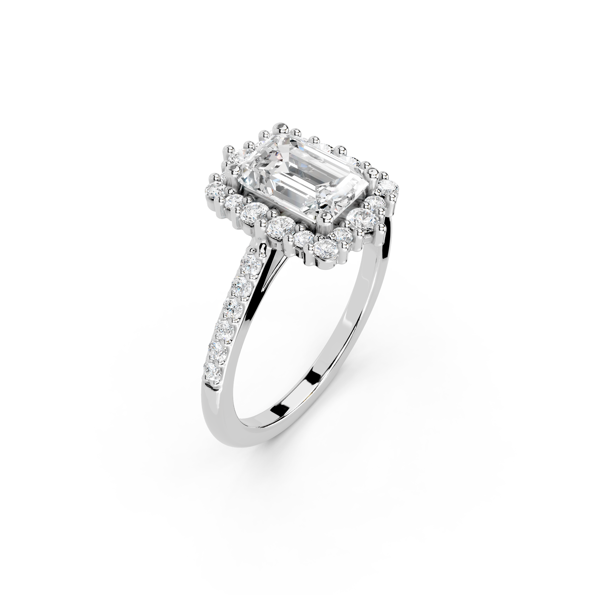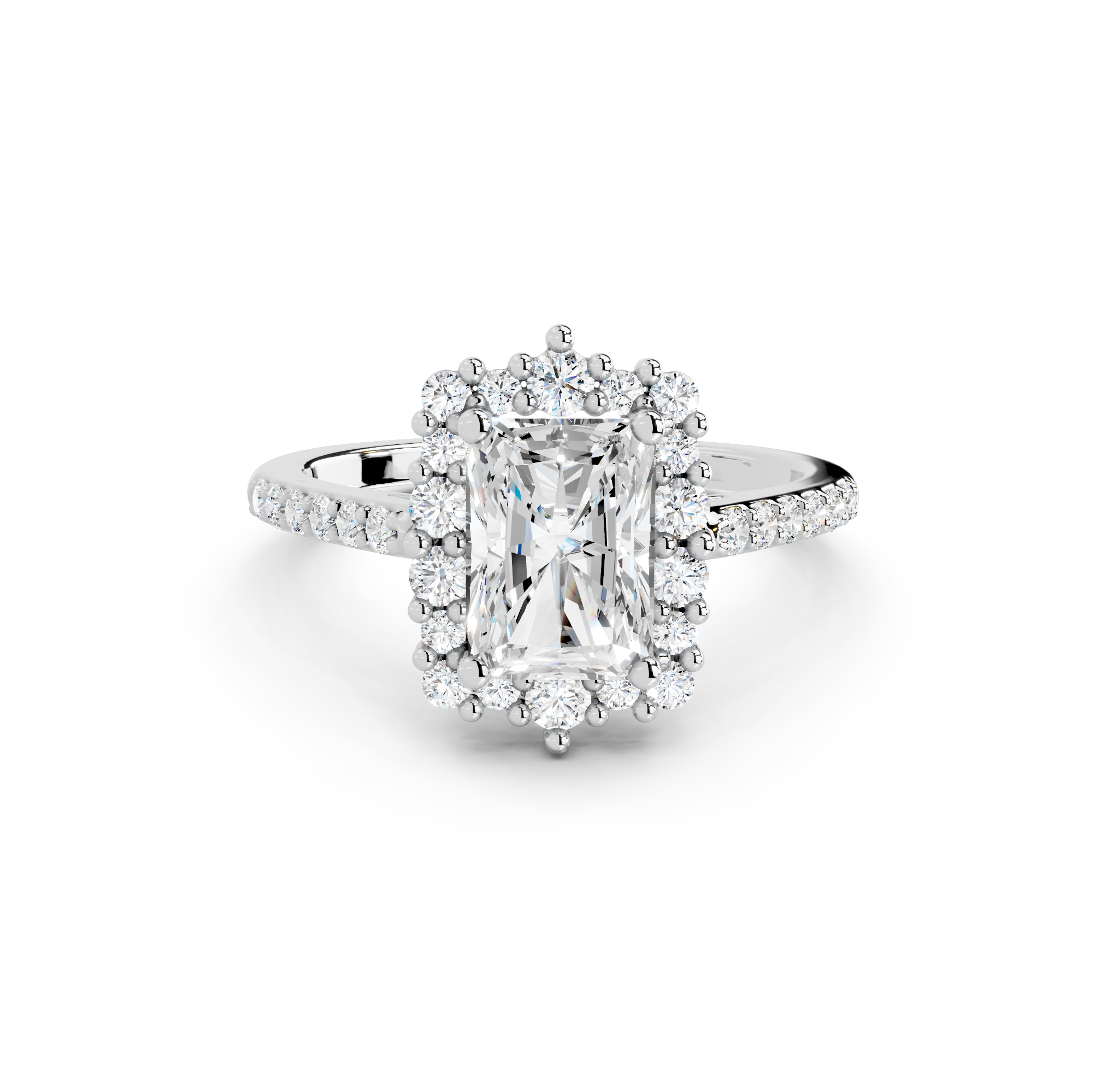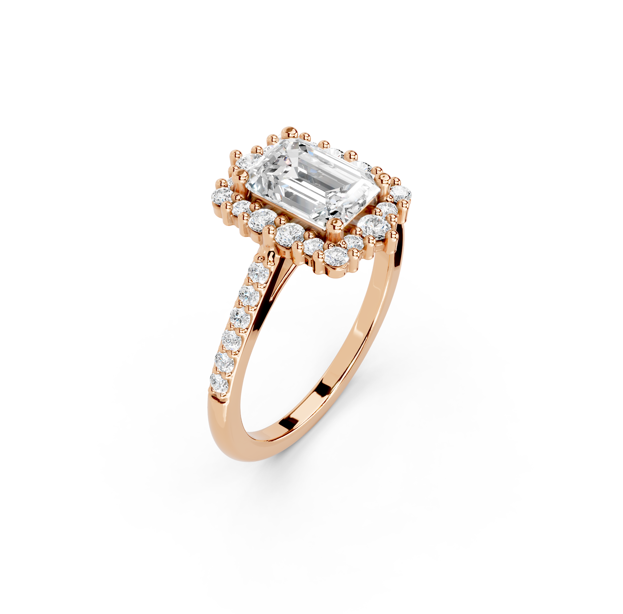 Meet Alina, a ring that redefines elegance with her romantic silhouette. This Pavé Marquise-Shaped Halo Cathedral Engagement Ring is designed for a love as unique as its form.
