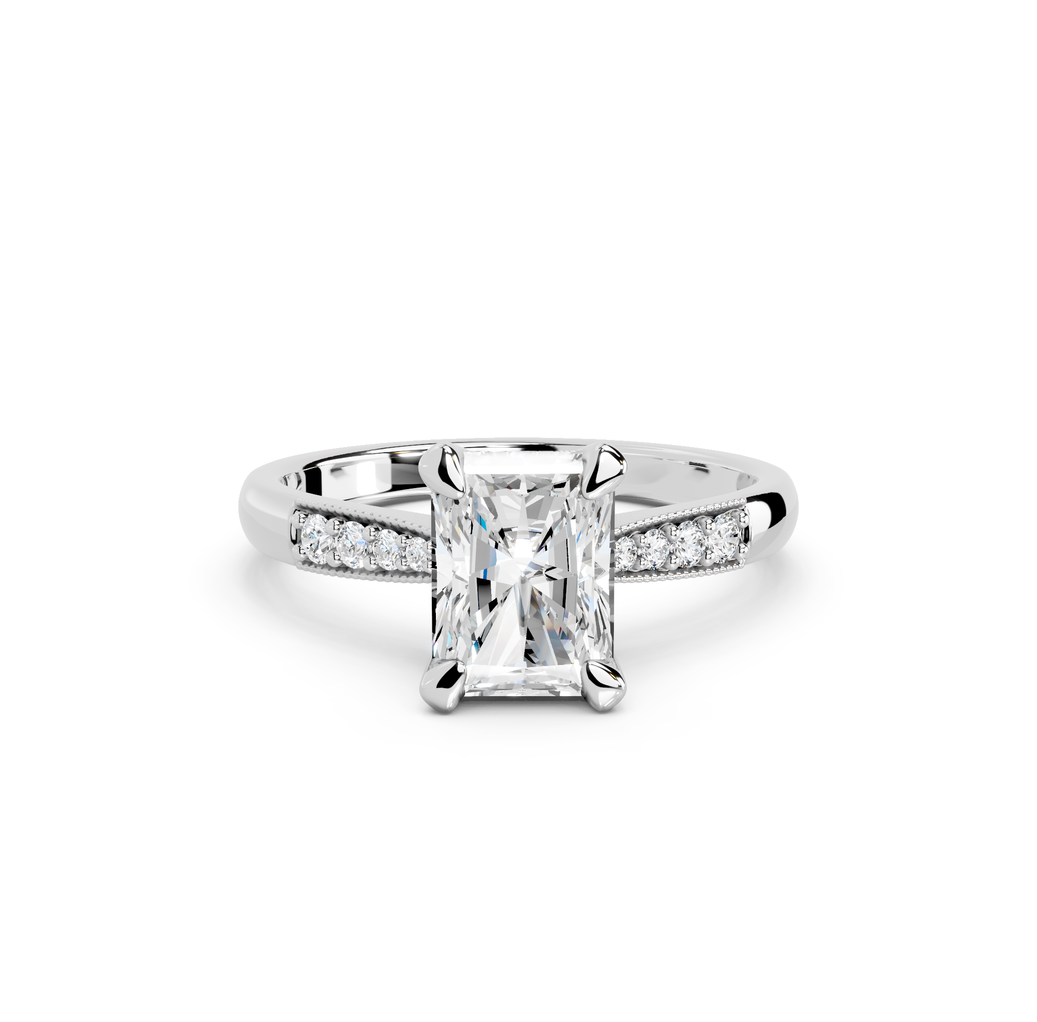 The shimmer of our tapered pavé milgrain engagement ring will make your love shine bright. The band elegantly tapers to enhance your center diamond, while brilliant pavé diamonds on the band creates more shimmer. The delicate milgrain detailing borders the pavé stones, bringing vintage artistry and character to the design.