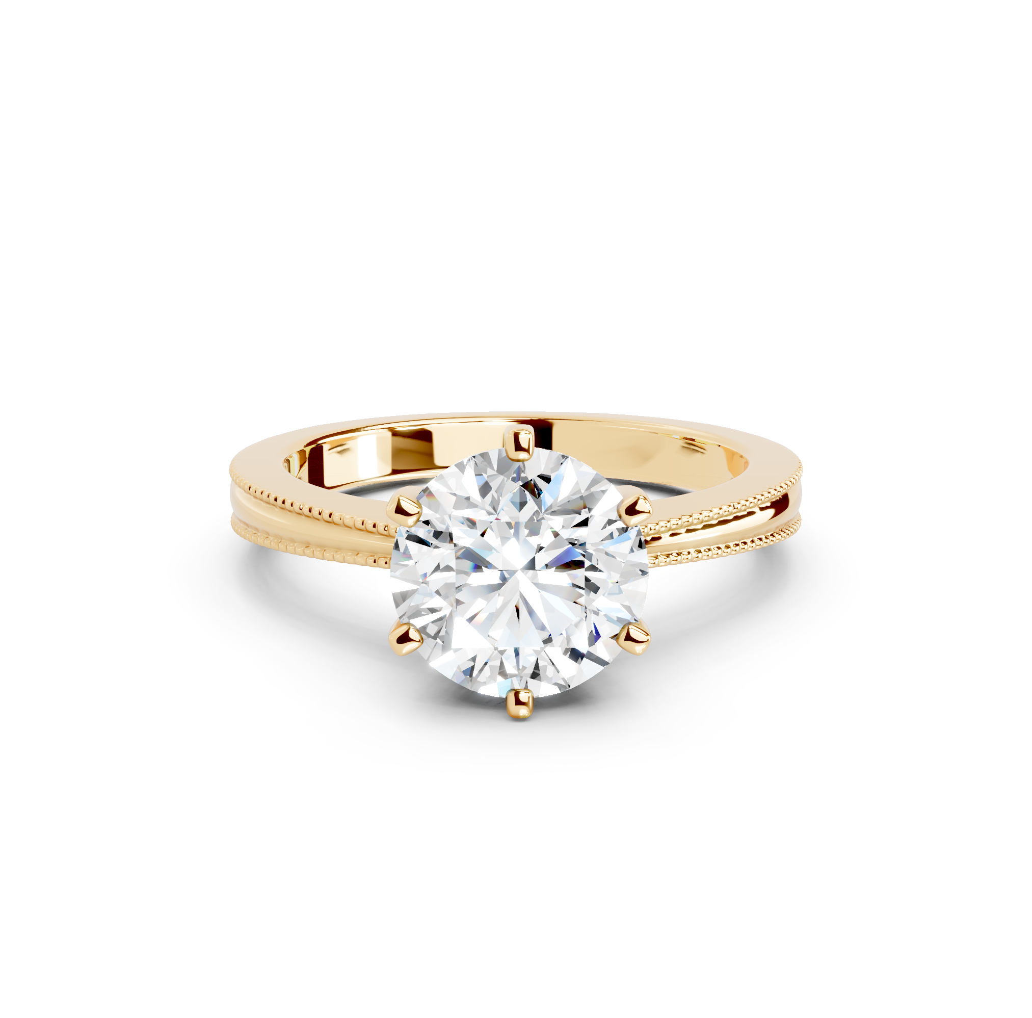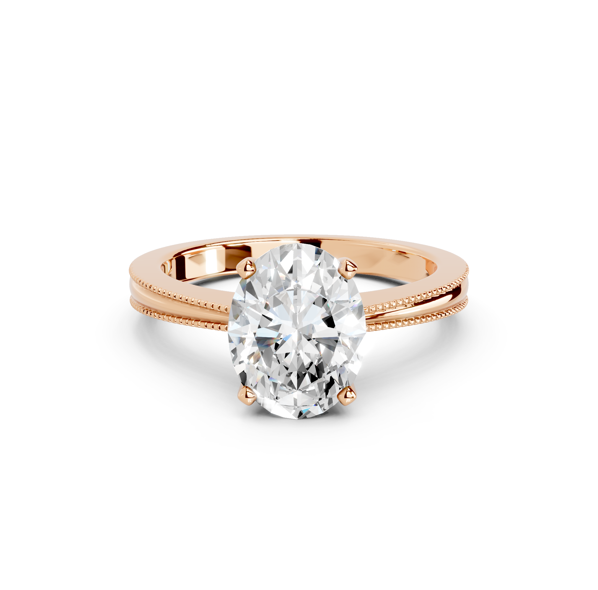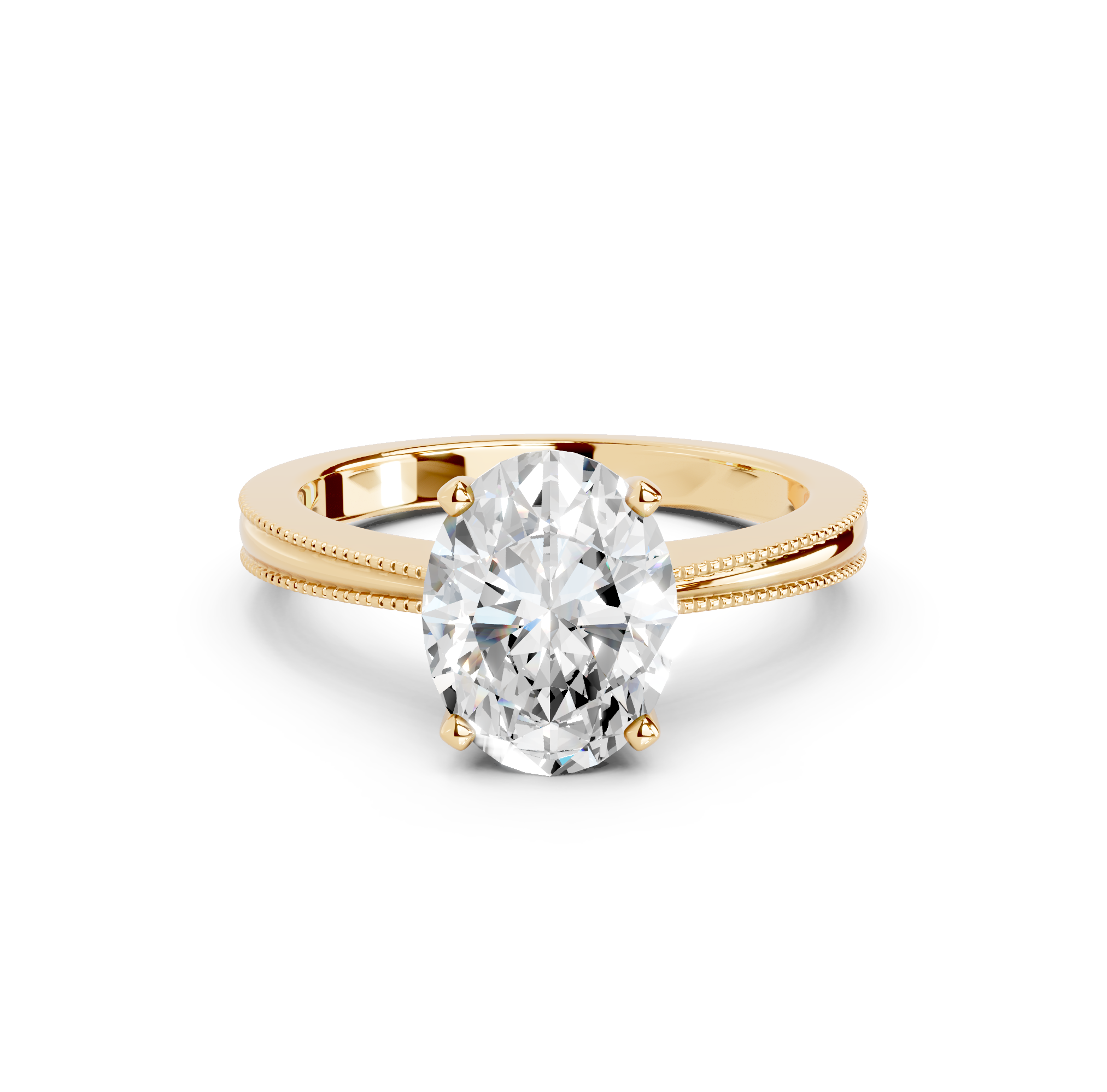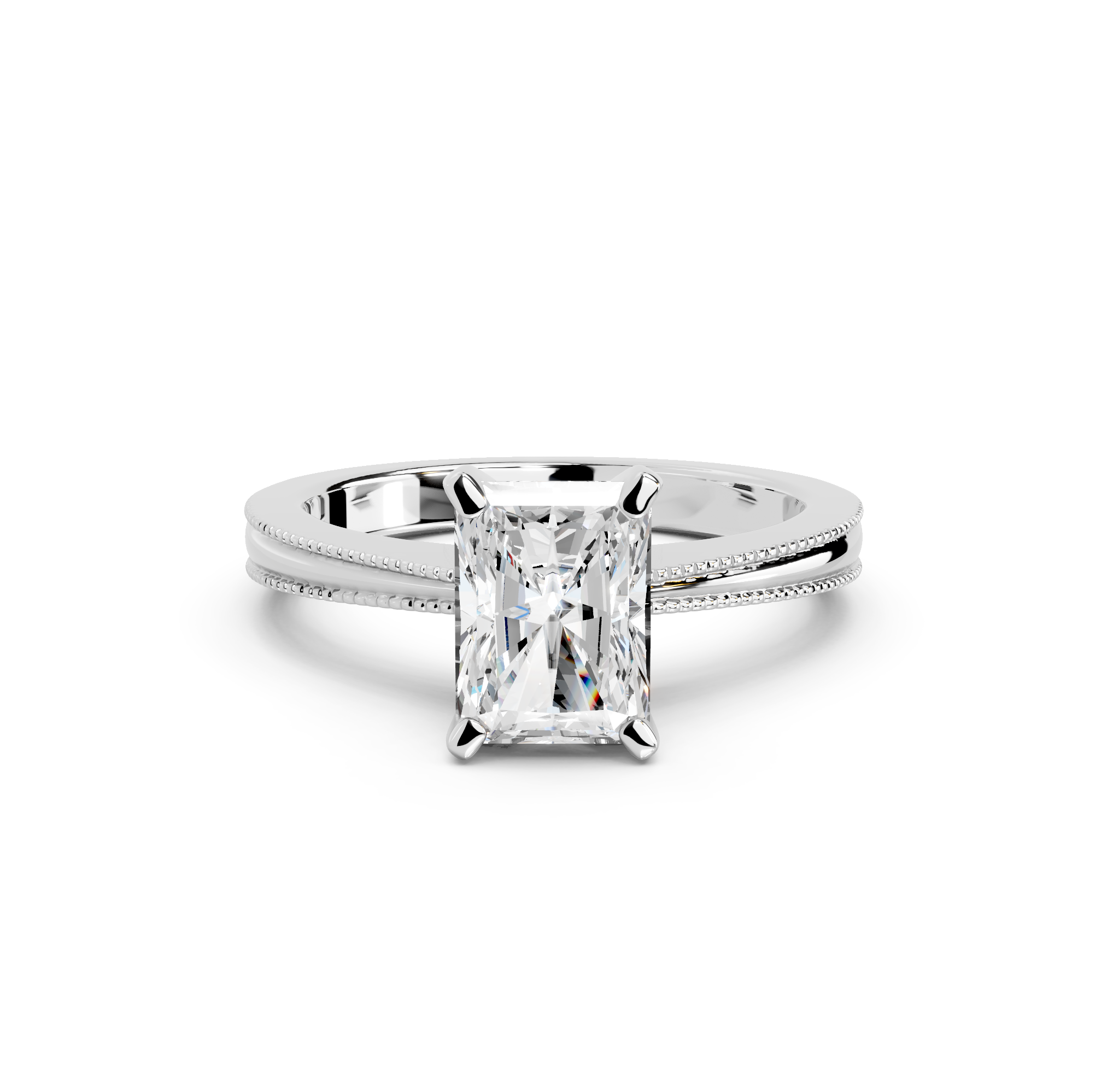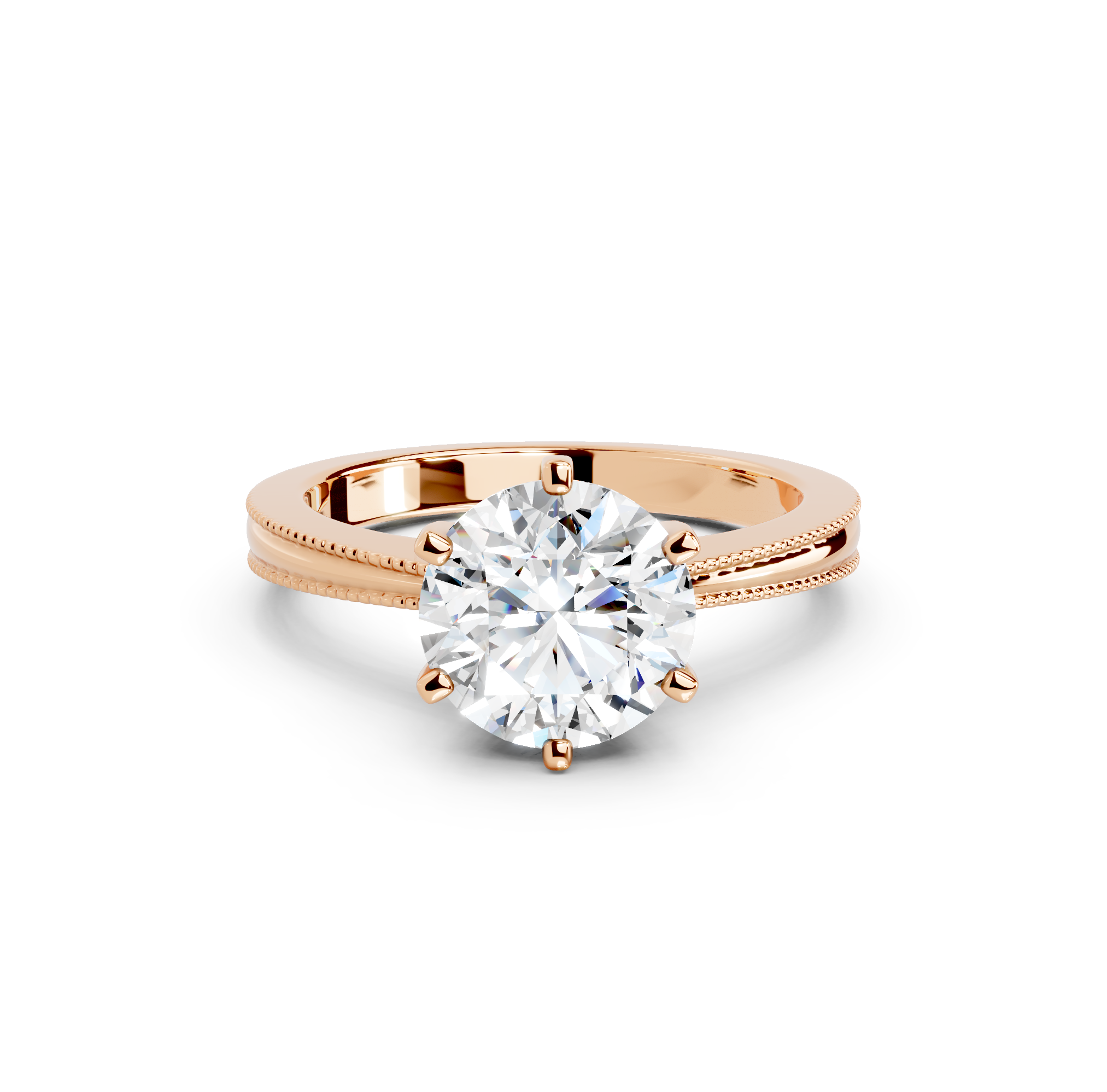 This solitaire milgrain tapered solitaire engagement ring puts a slight twist on a timeless classic. The minimalist design allows your center stone to shine, drawing the eye with its tapered band. The milgrain detailing on the band adds a lovely a delicate beaded edge that brings vintage charm and refined texture without overwhelming the diamond's brilliance. It's subtle sophistication, designed for forever.