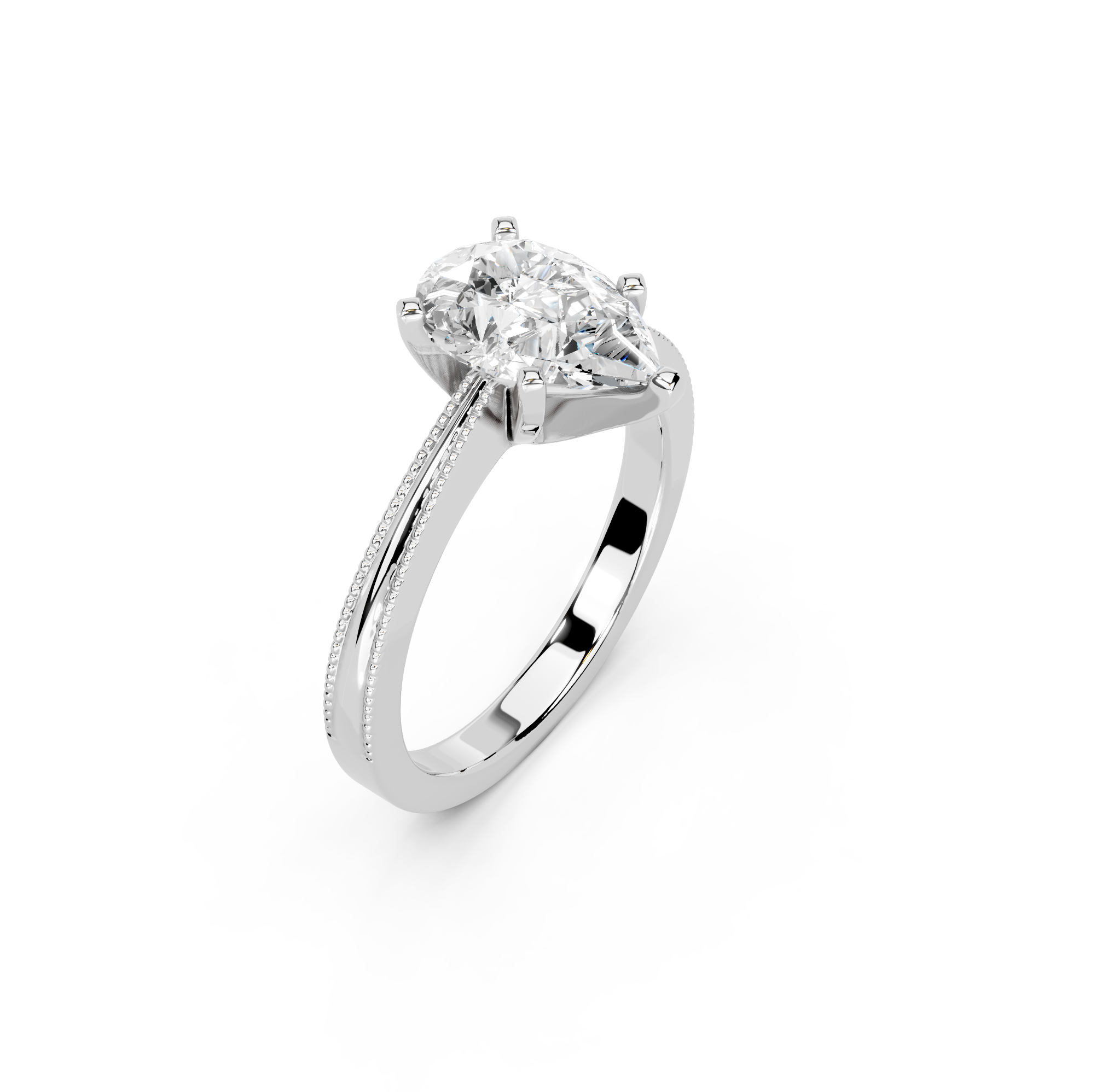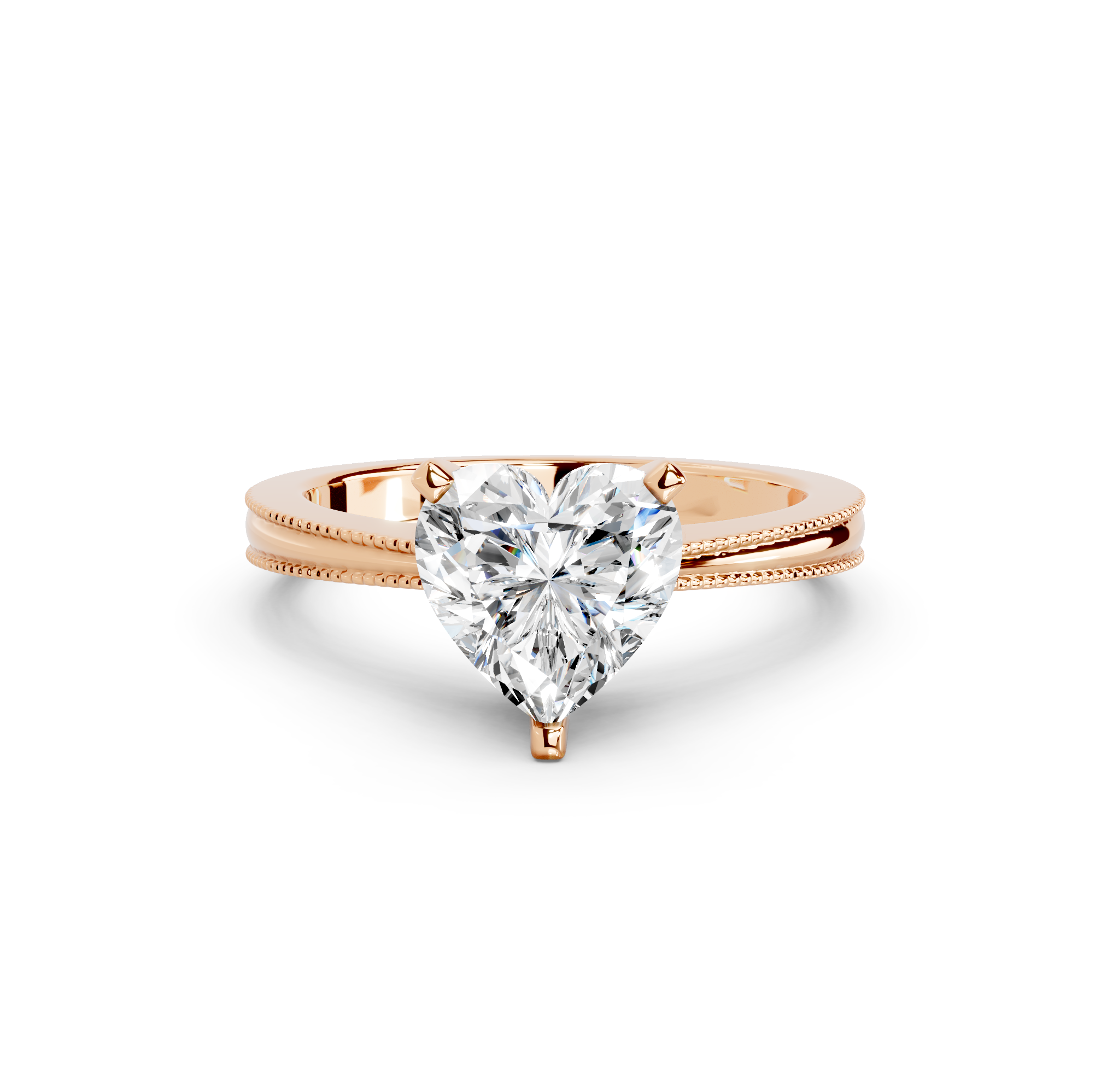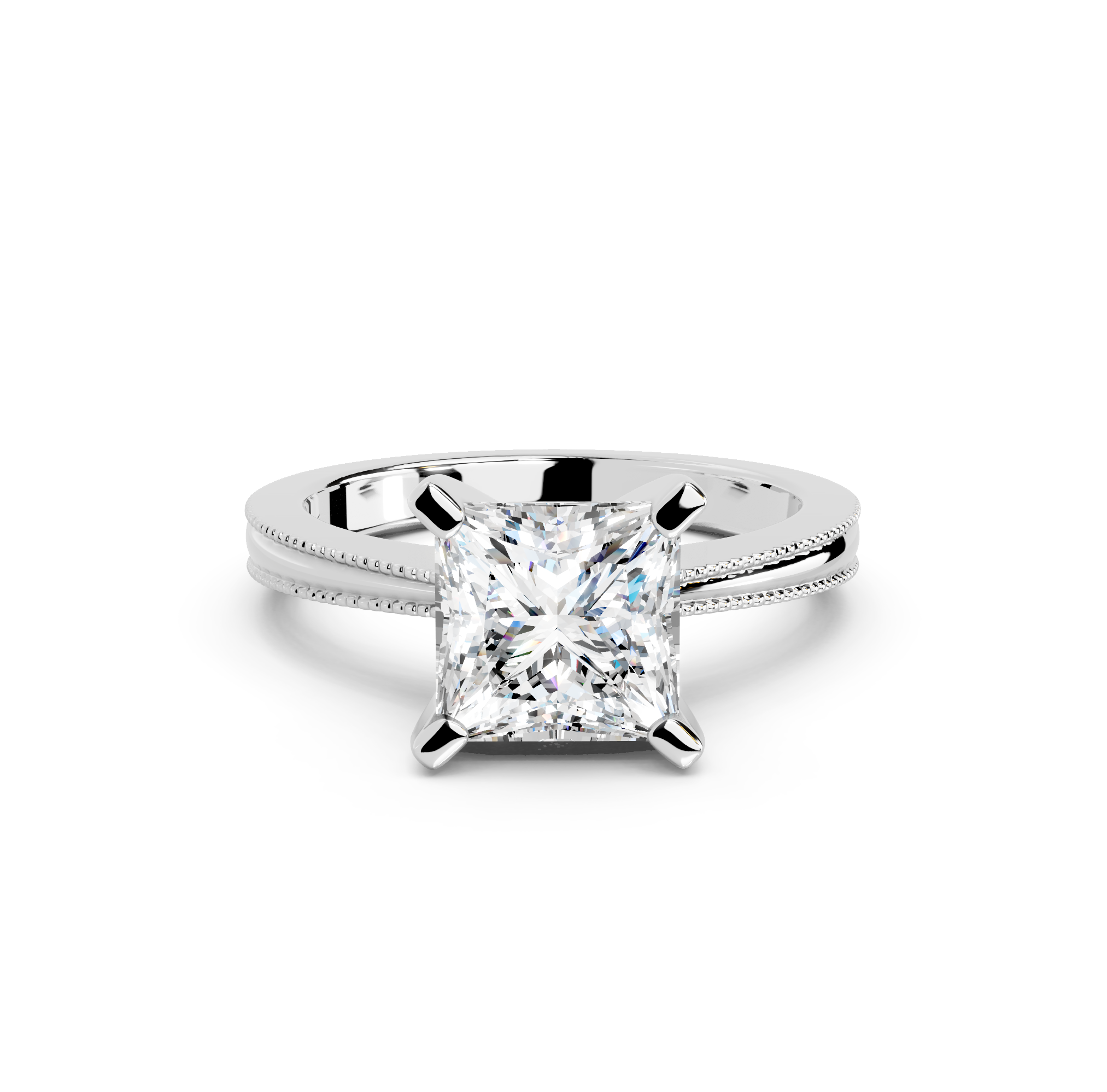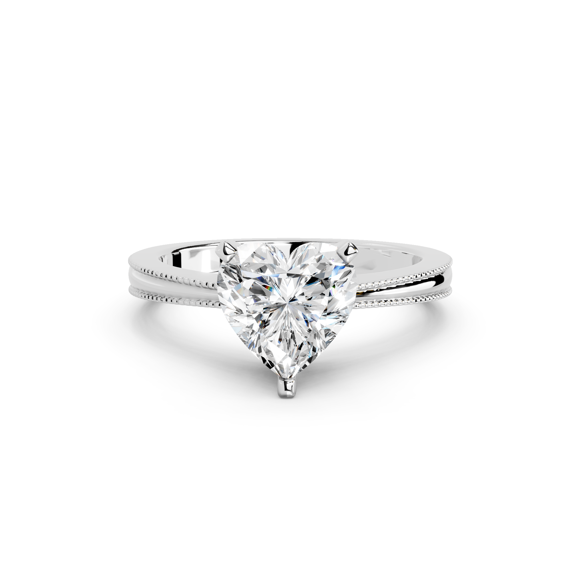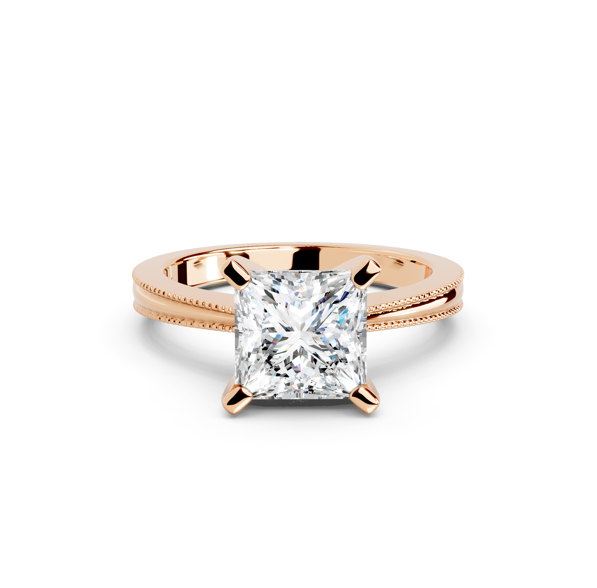 This solitaire milgrain tapered solitaire engagement ring puts a slight twist on a timeless classic. The minimalist design allows your center stone to shine, drawing the eye with its tapered band. The milgrain detailing on the band adds a lovely a delicate beaded edge that brings vintage charm and refined texture without overwhelming the diamond's brilliance. It's subtle sophistication, designed for forever.