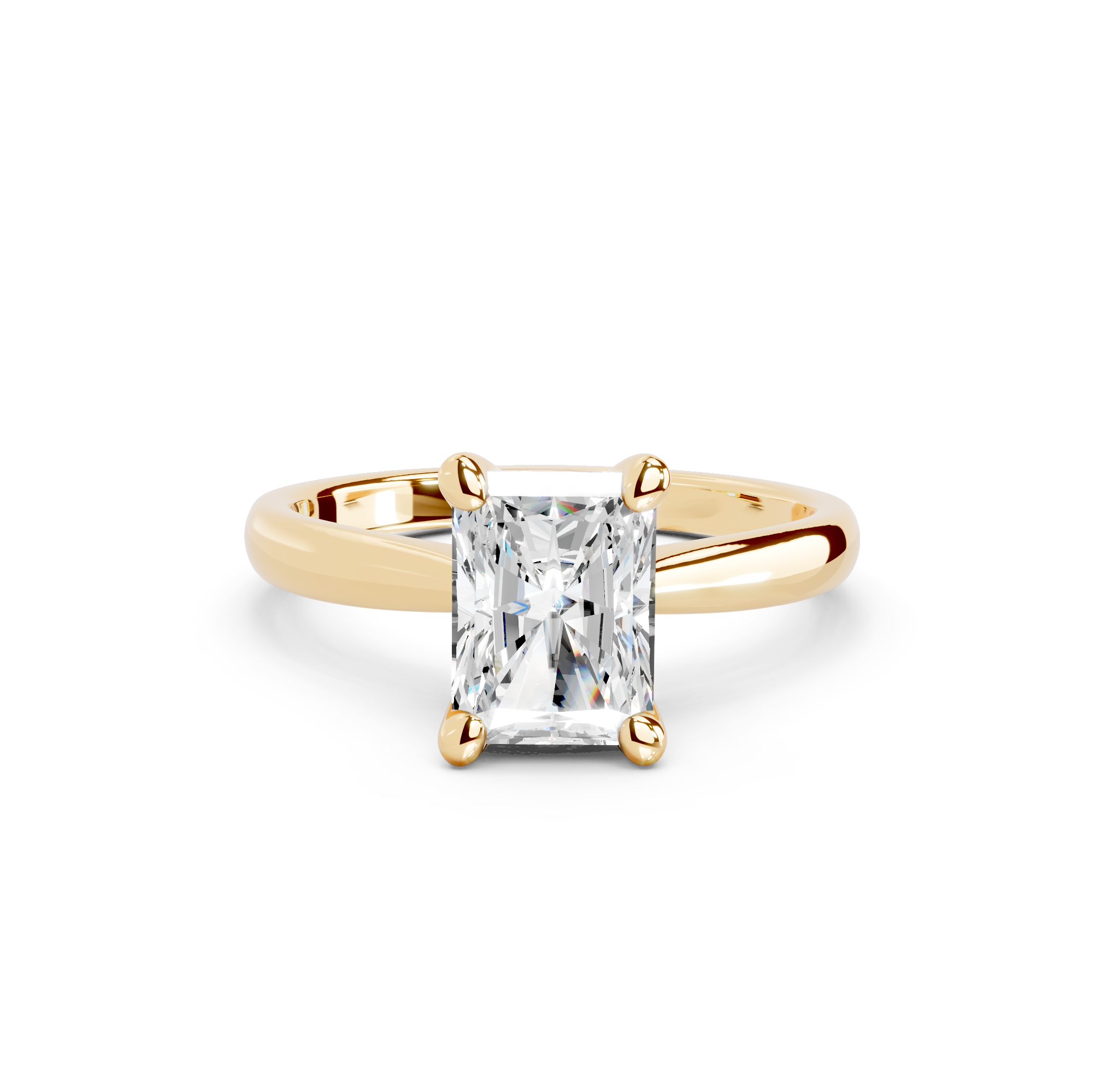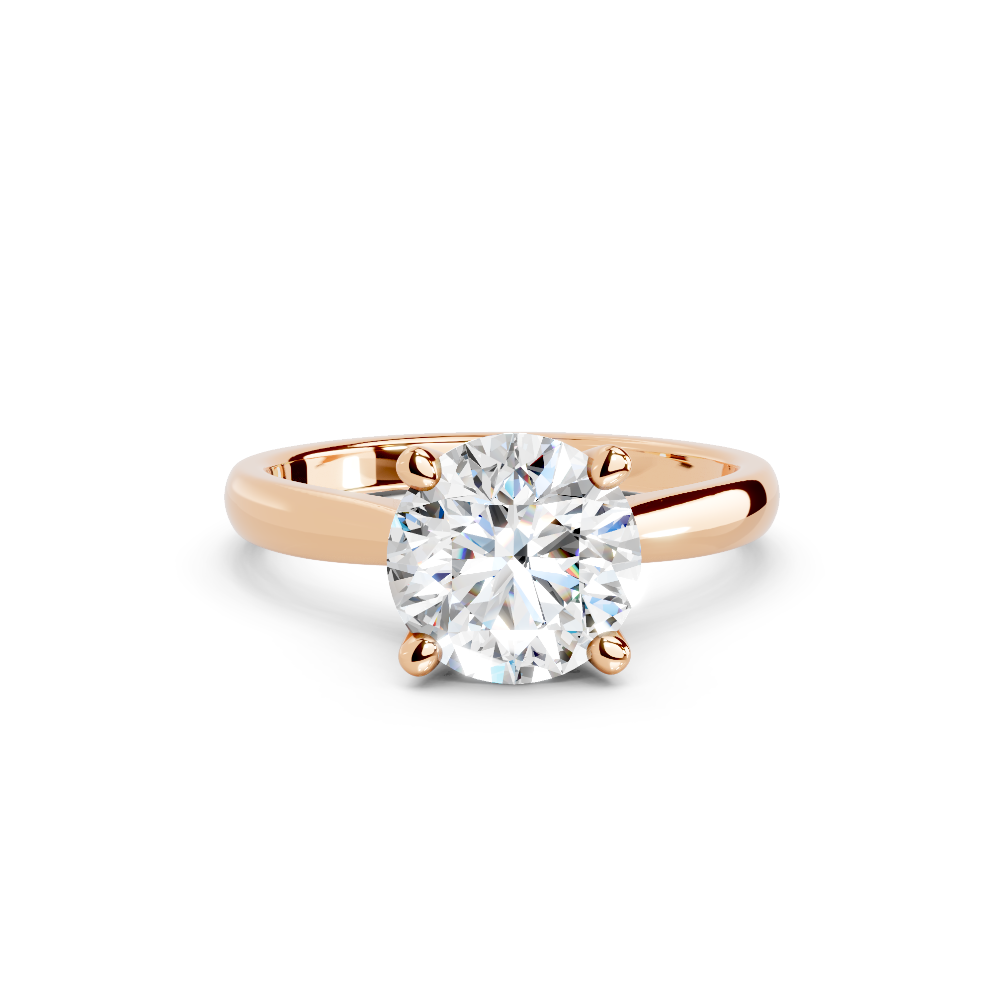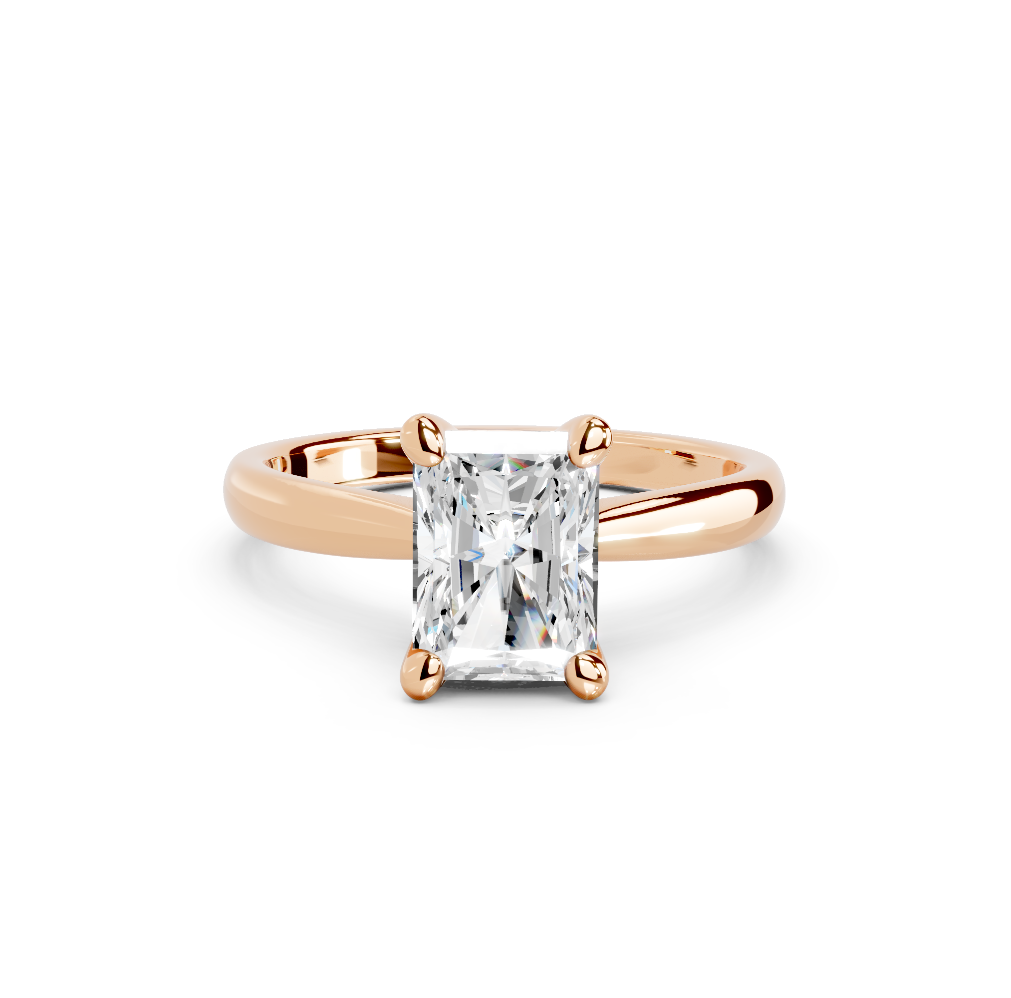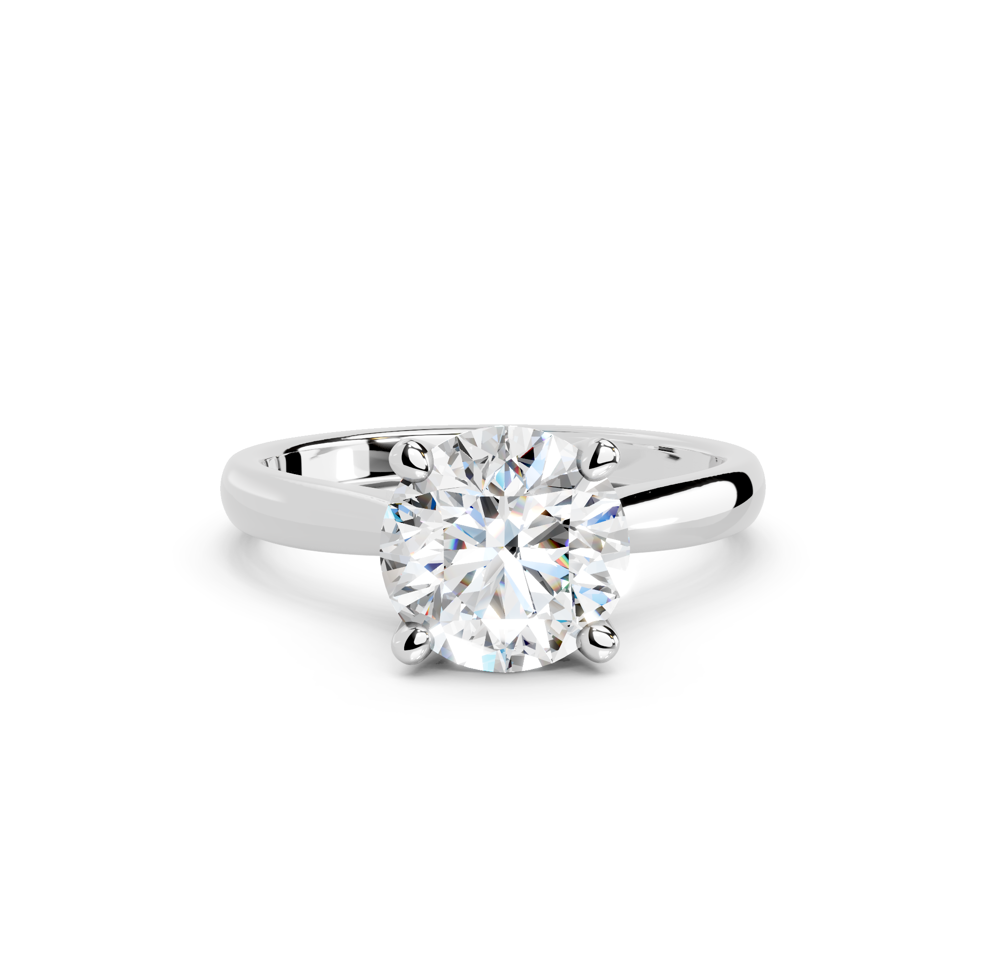 Celebrate forever with our classic and sophisticated tapered solitaire engagement ring. This gorgeous minimalist design allows the center stone to command all the attention. The band elegantly tapers as it reaches the diamond, creating a clean line that frames its brilliance without distraction.