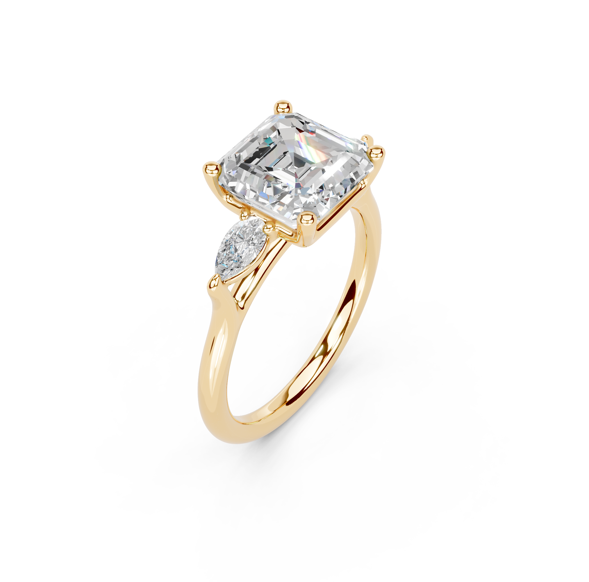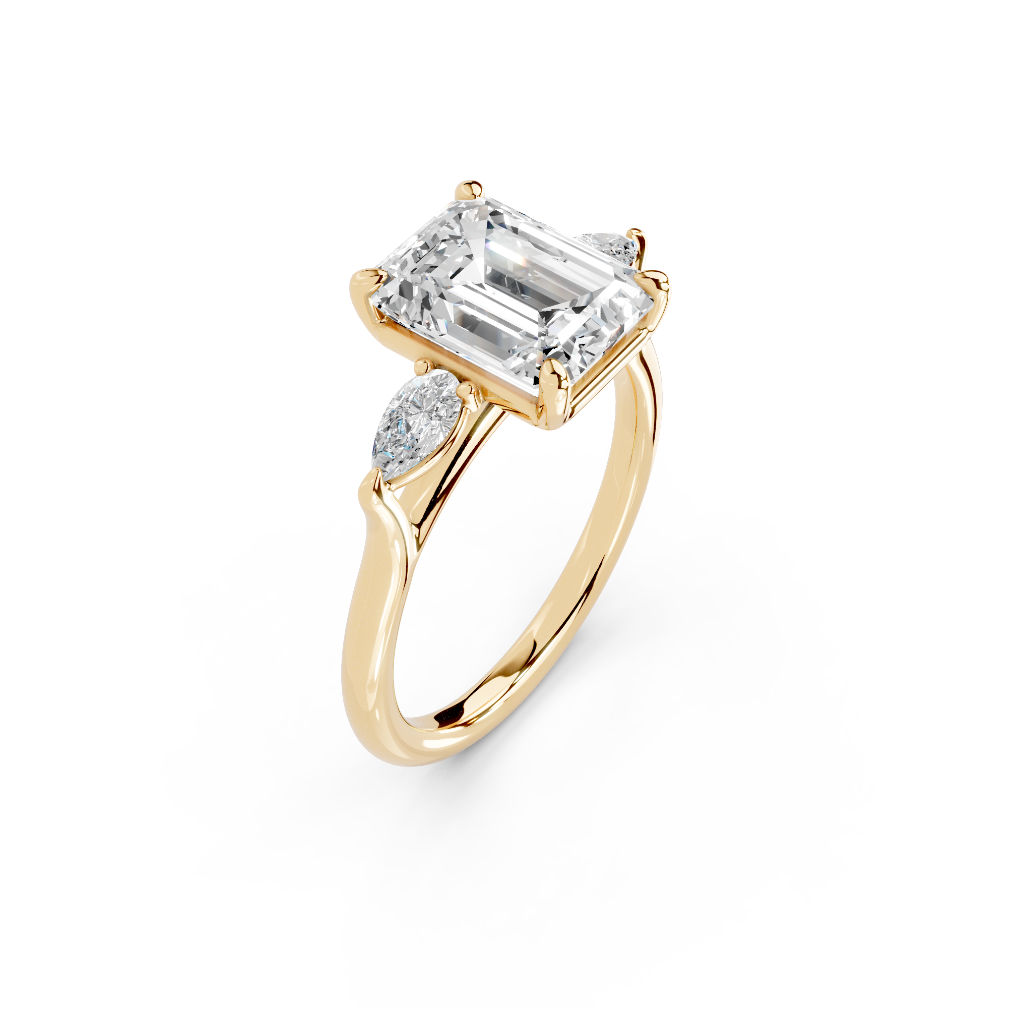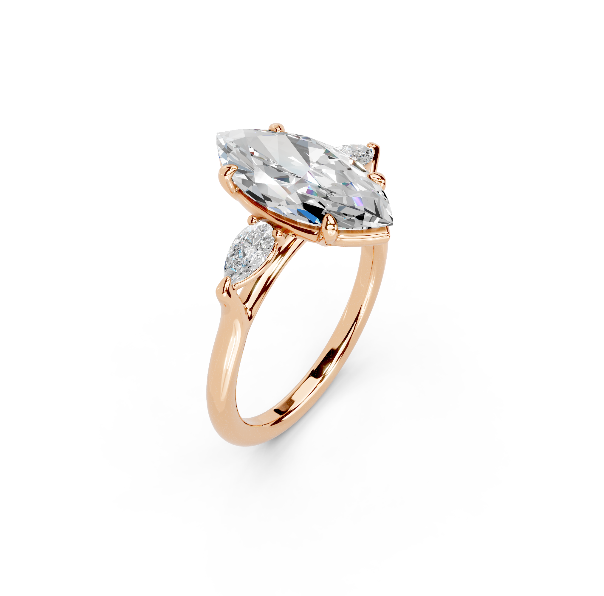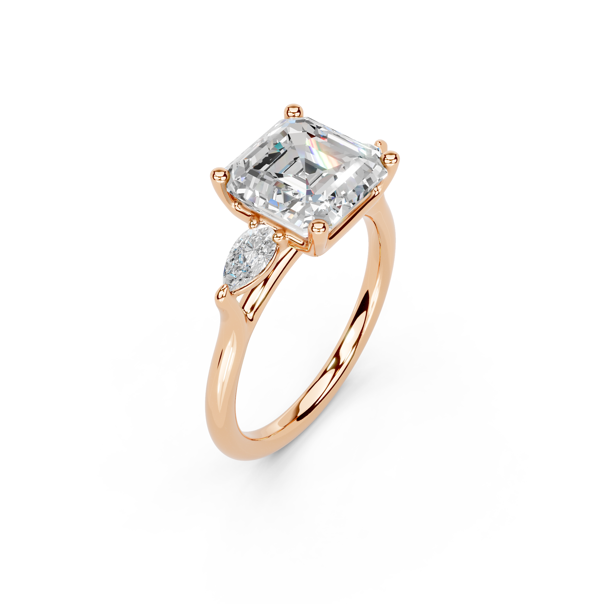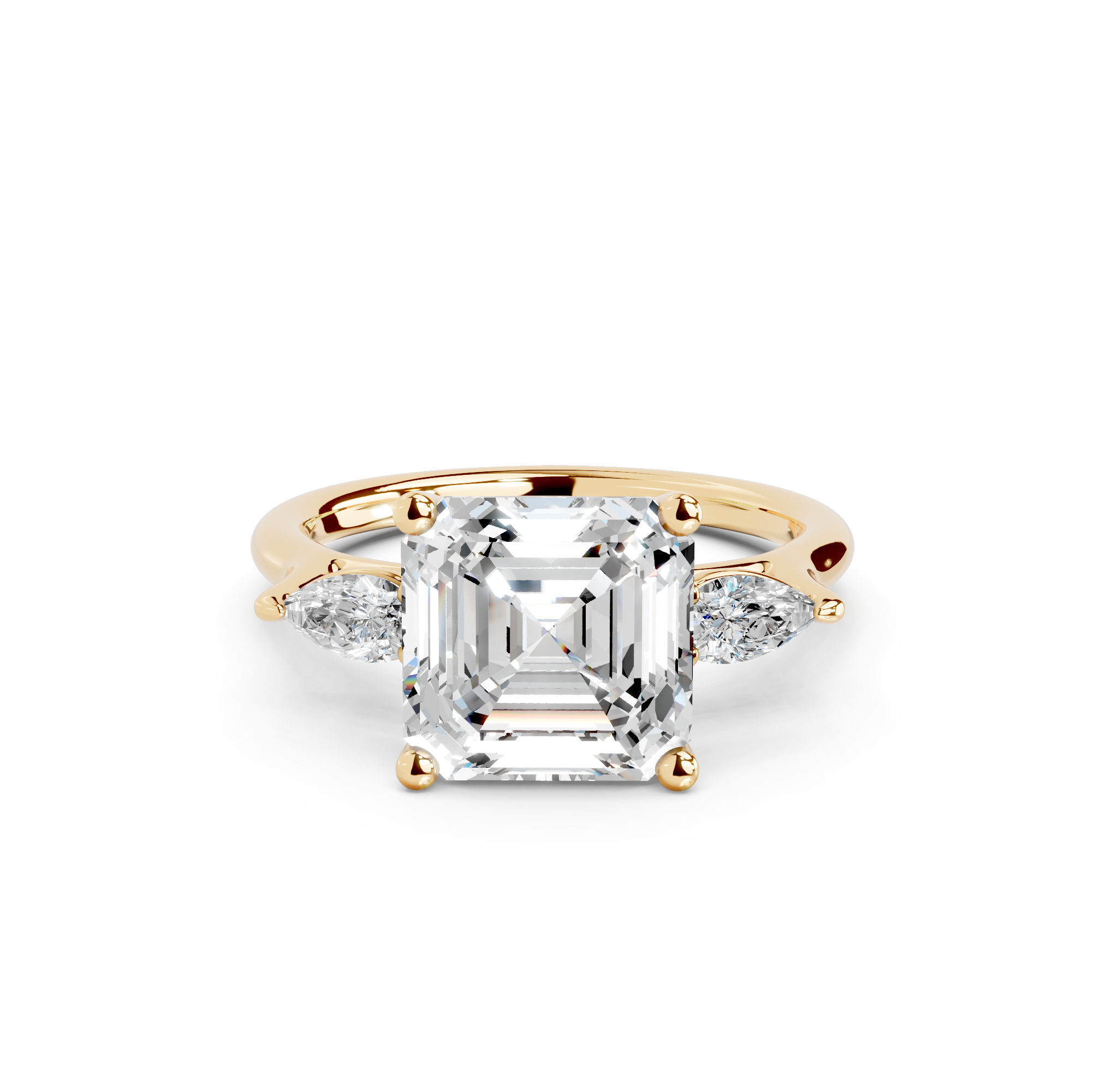 The center diamond of your choosing, plus two romantic pear-cut side stones each represent a chapter in your journey with your loved one. What makes the Bella truly unique is how these diamonds seem to float: the elegant cathedral setting holds each stone high above the band, creating that airy, suspended effect.