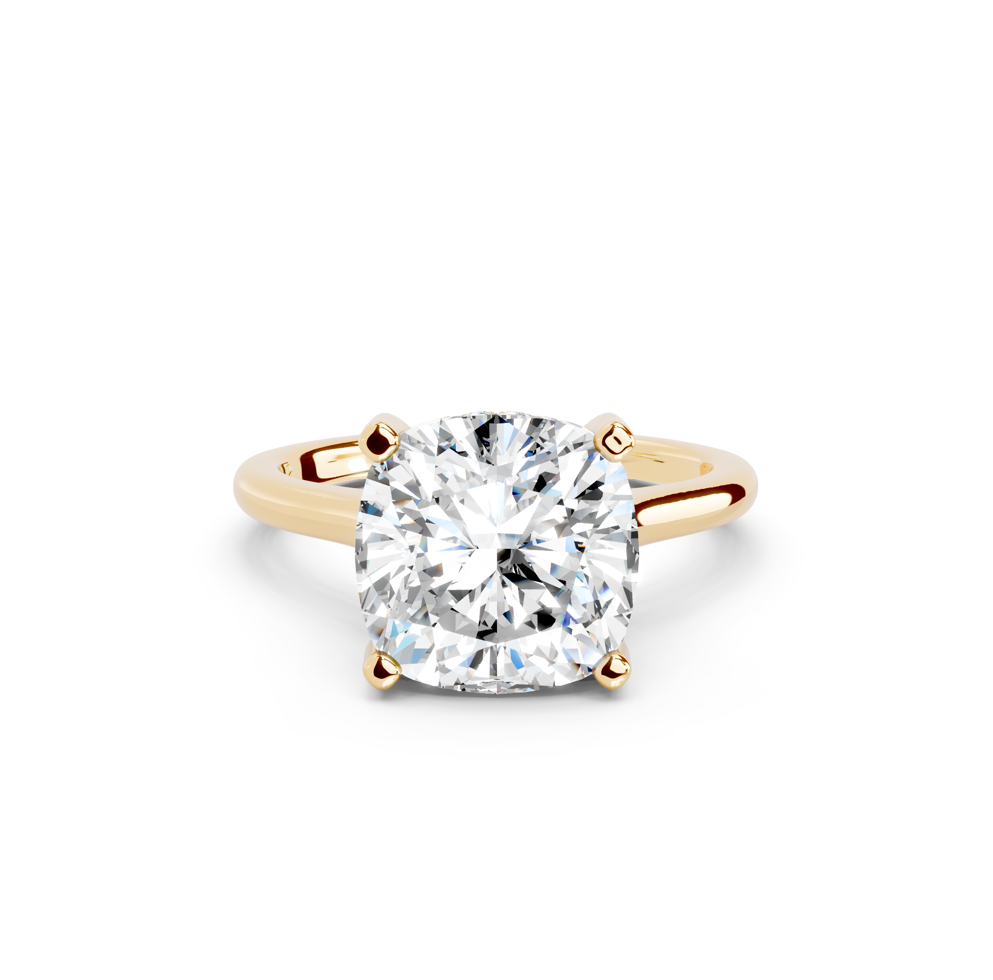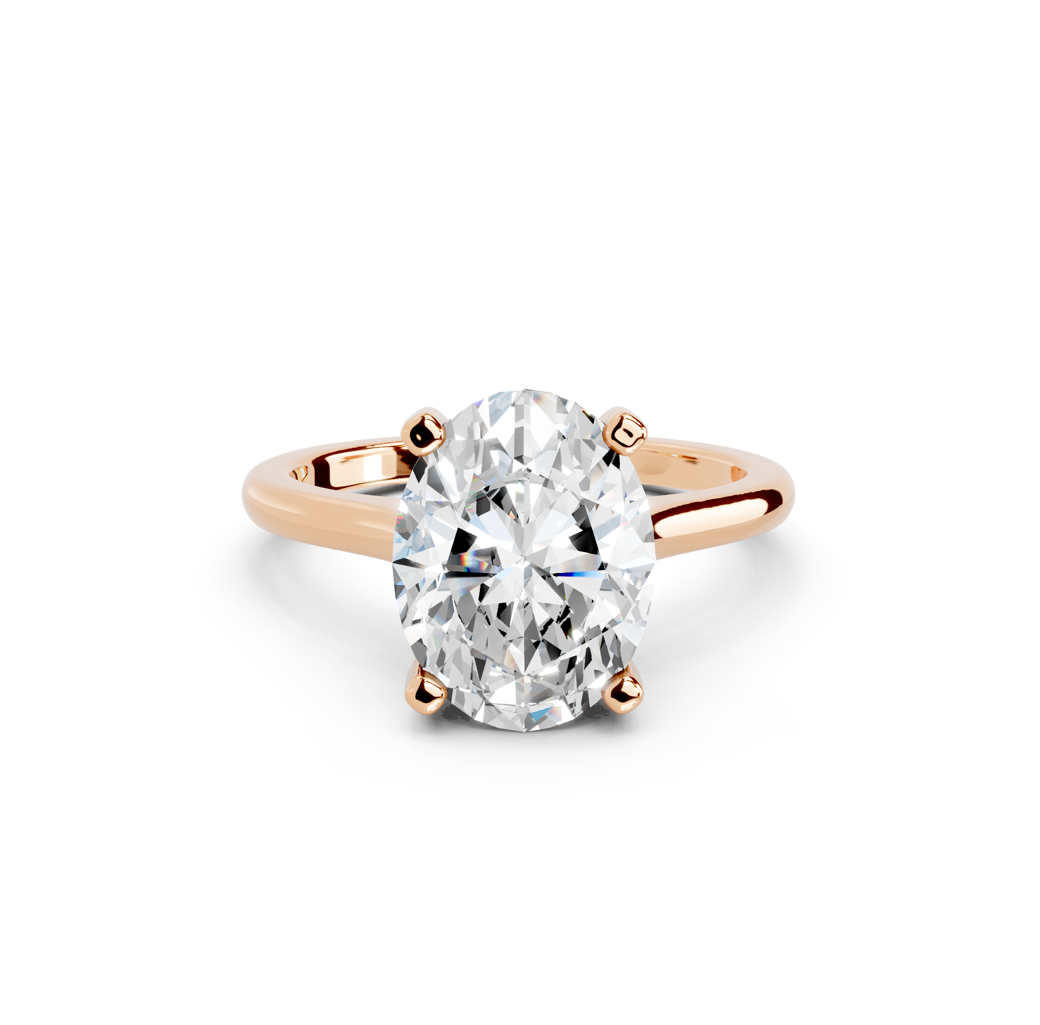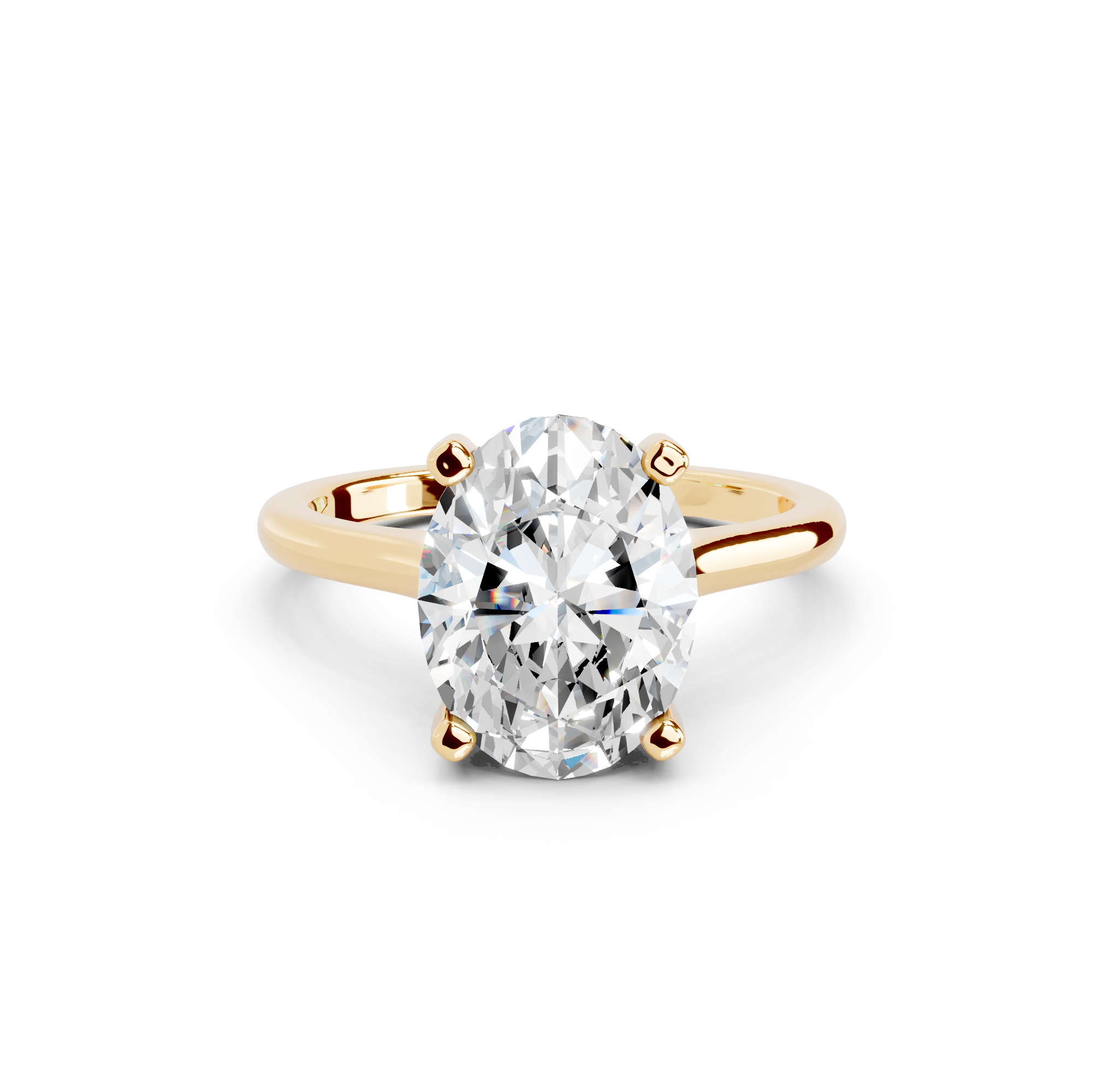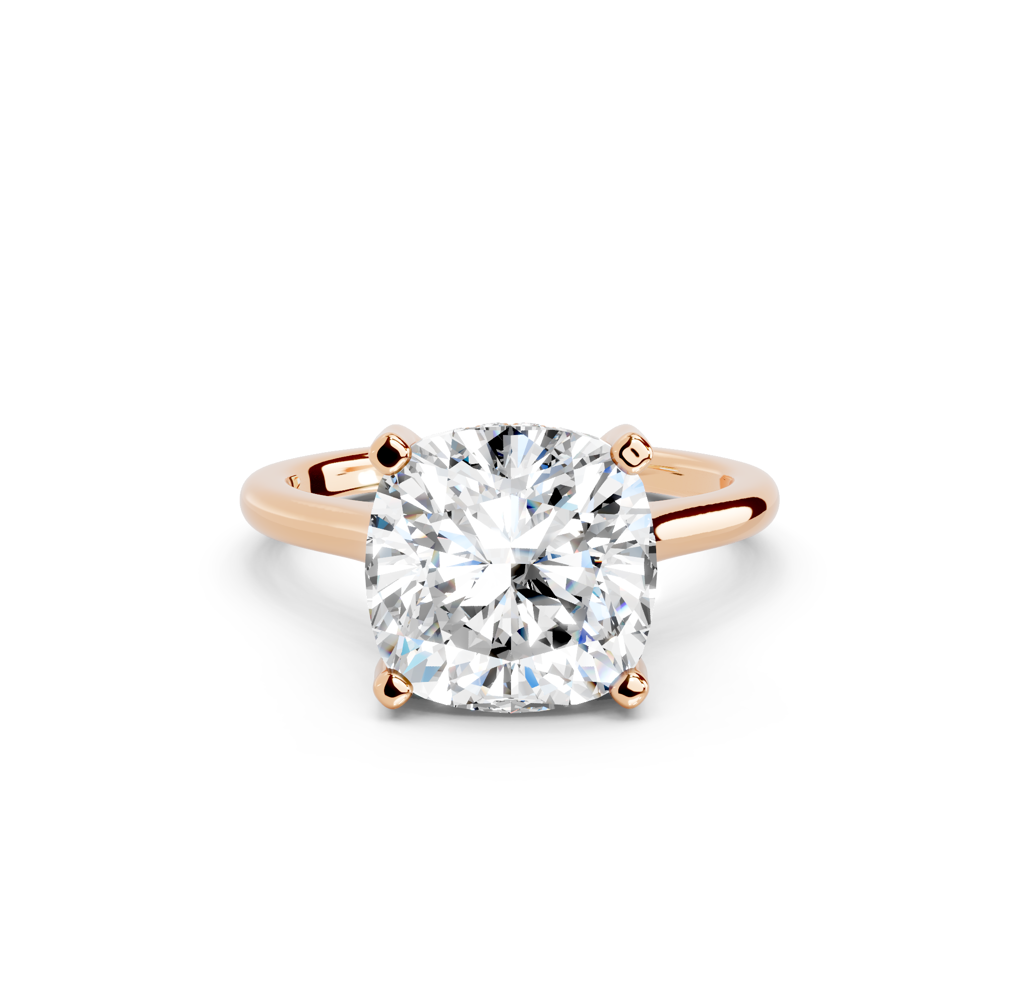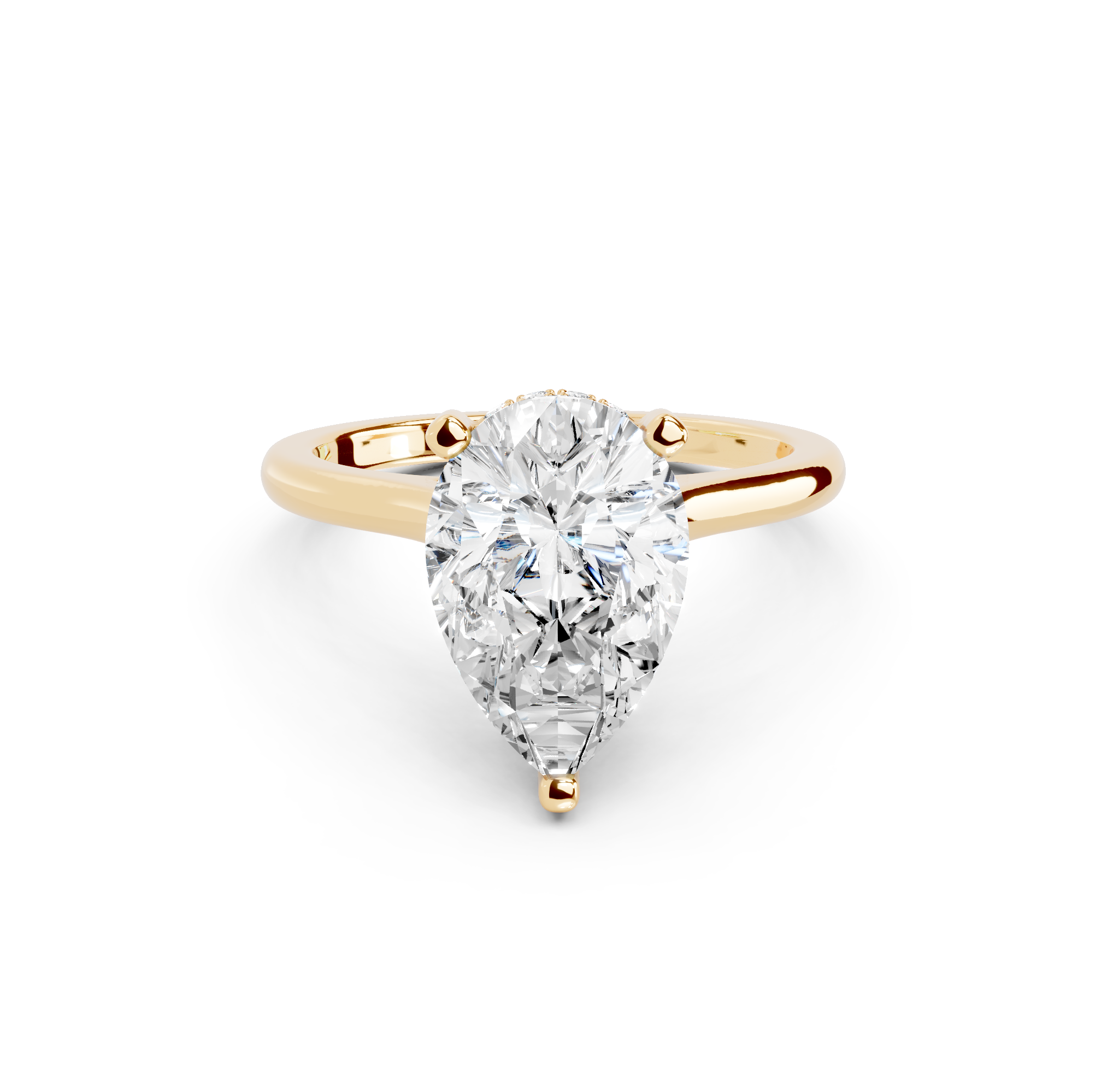 The Darya engagement ring combines the clean elegance of a solitaire with a surprise hidden halo of diamonds beneath the center stone. Its cathedral setting lifts the diamond high above the band, while the concealed halo adds extra brilliance that's visible from the side profile, creating beautiful light without overwhelming the center stone.