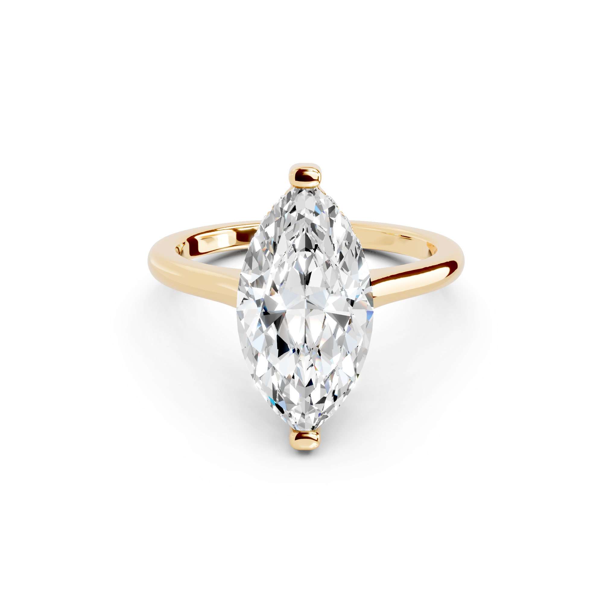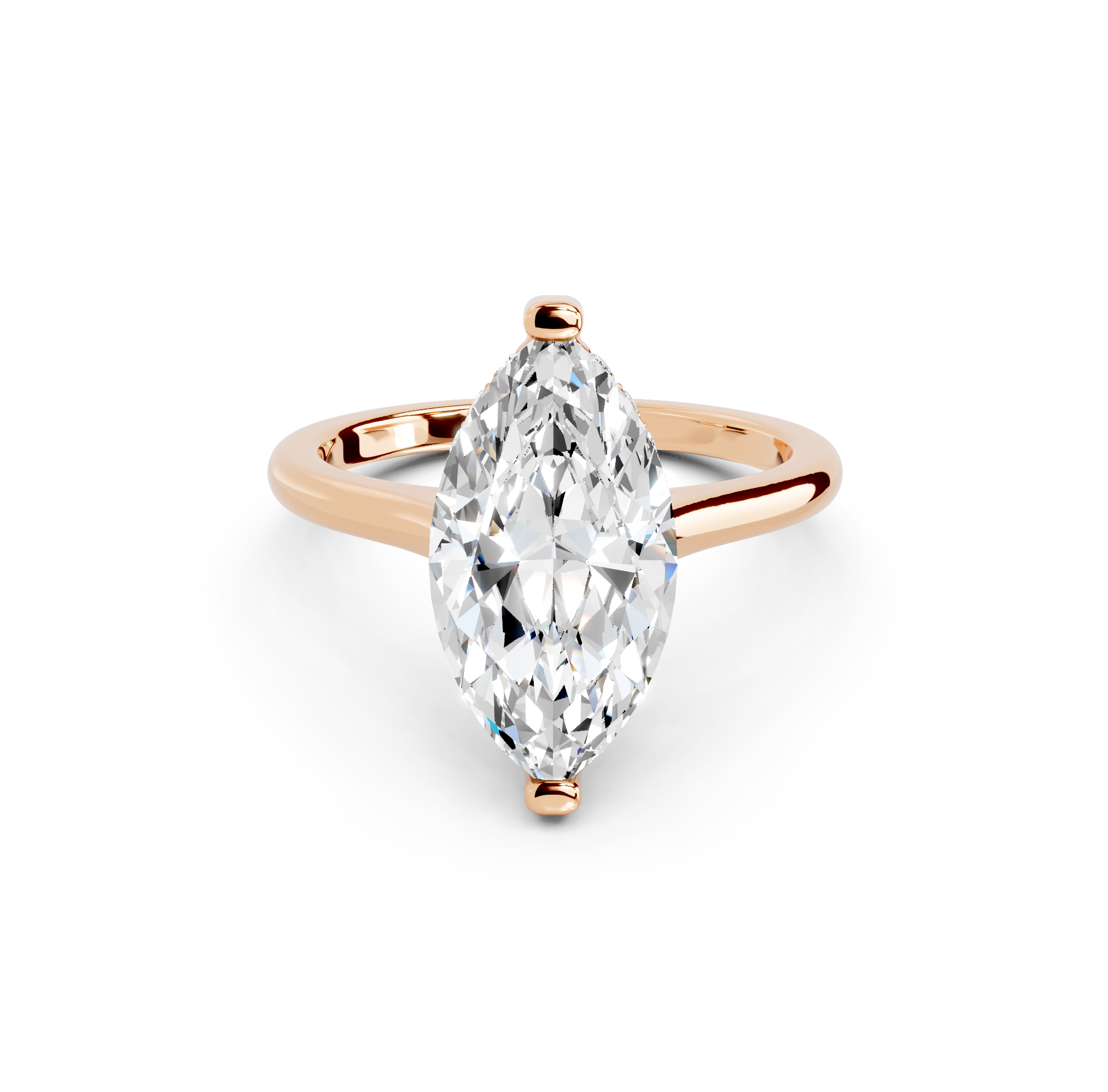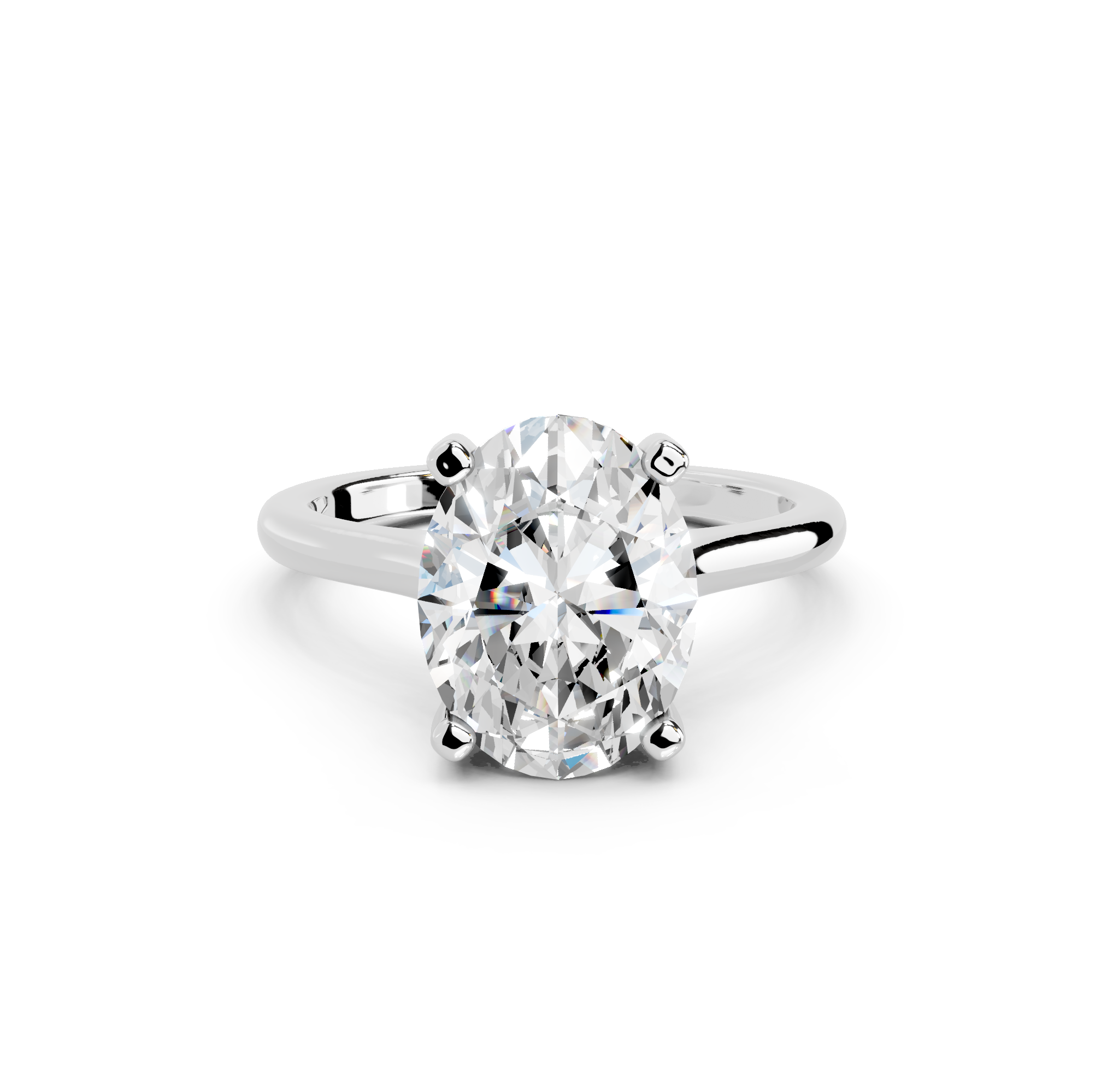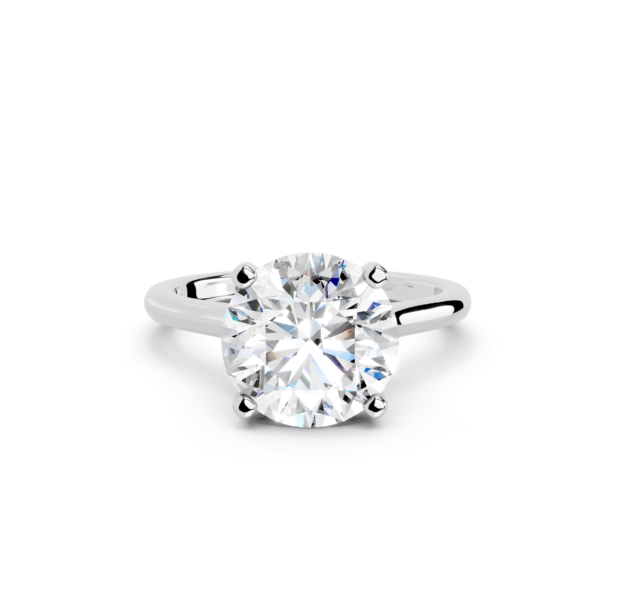 The Darya engagement ring combines the clean elegance of a solitaire with a surprise hidden halo of diamonds beneath the center stone. Its cathedral setting lifts the diamond high above the band, while the concealed halo adds extra brilliance that's visible from the side profile, creating beautiful light without overwhelming the center stone.