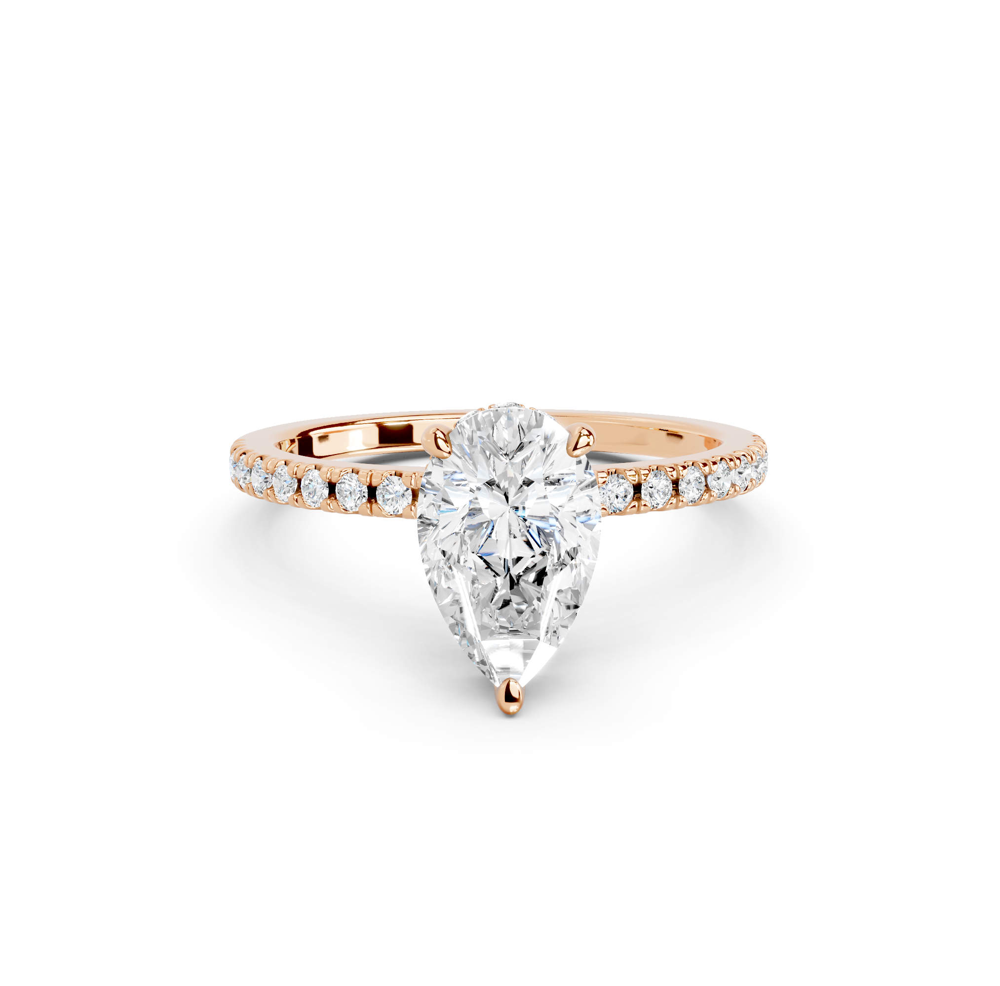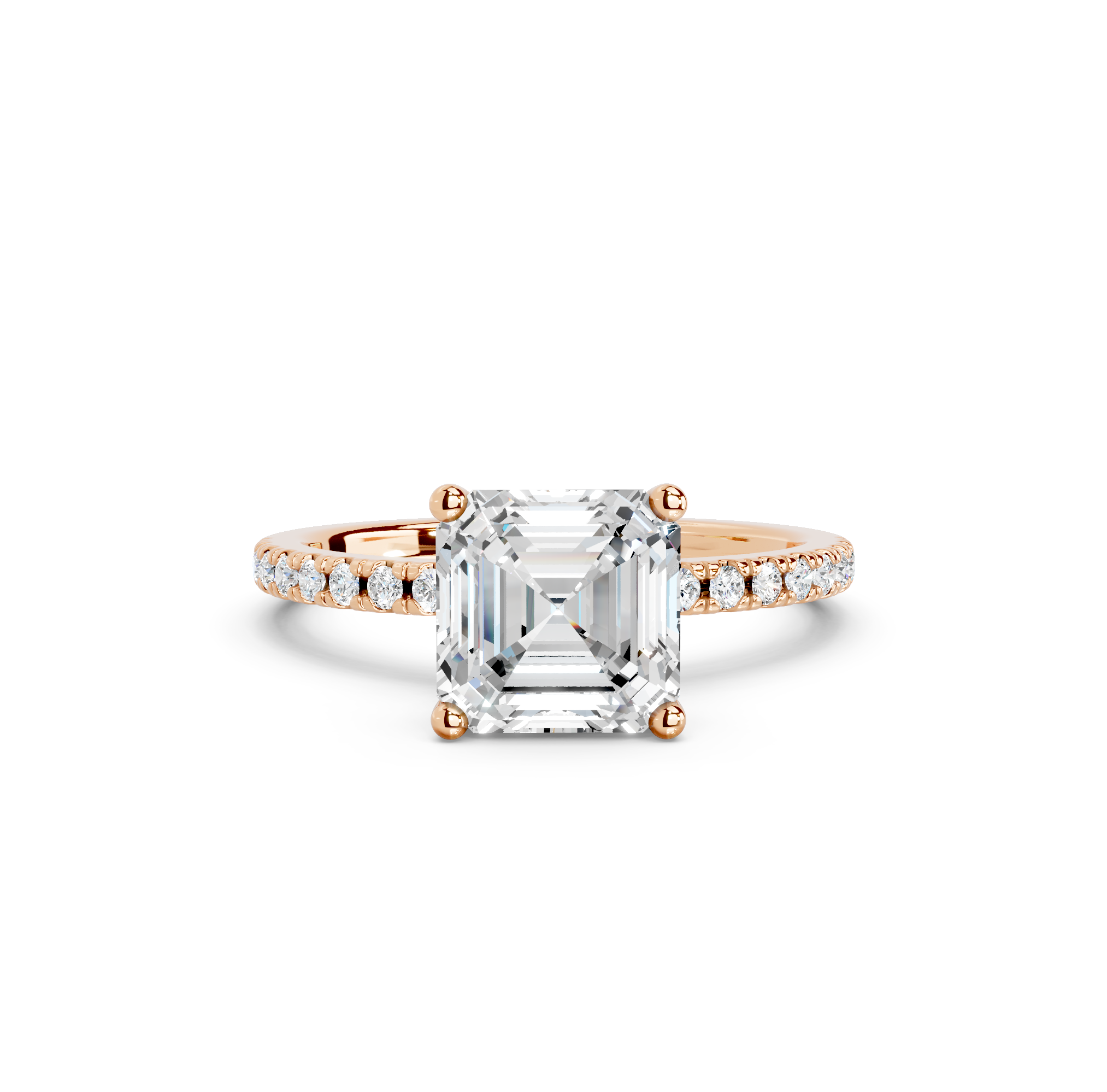 For those who love simple rings that still make a big statement, the Emma is a perfect match. Round pavé diamonds sit on half of the band, striking the perfect balance between glamour and everyday comfort. A hidden halo of diamonds beneath the center stone adds secret shine that brings out the ring's overall shine without competing with the center diamond.