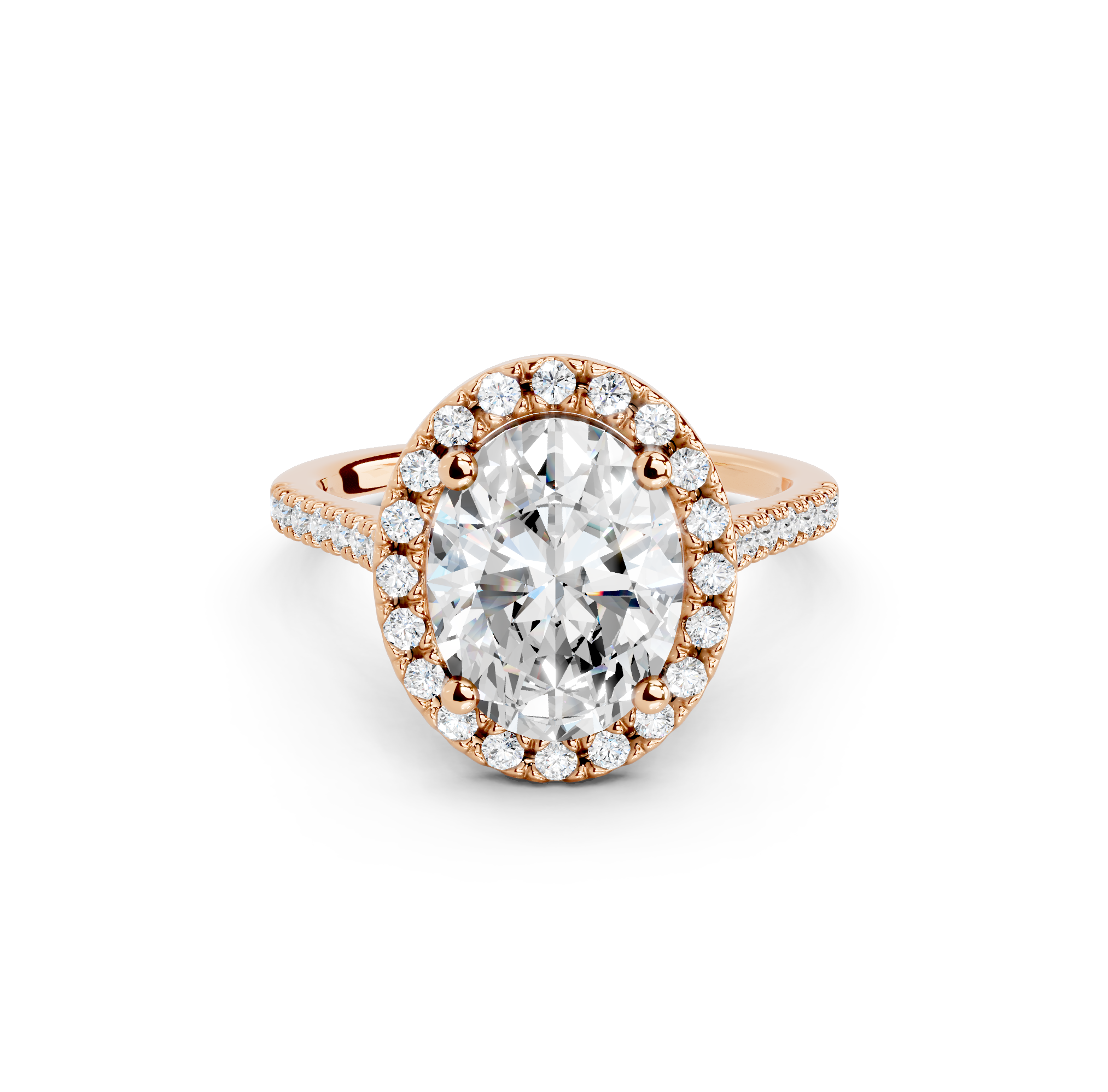 Layers of shimmering details give the Lillie engagement ring a lot of character. A classic round halo frames the center stone while pavé diamonds dance along the cathedral band. Look closer and you'll spot a small round diamond tucked beneath the main stone, visible only through the elevated setting.