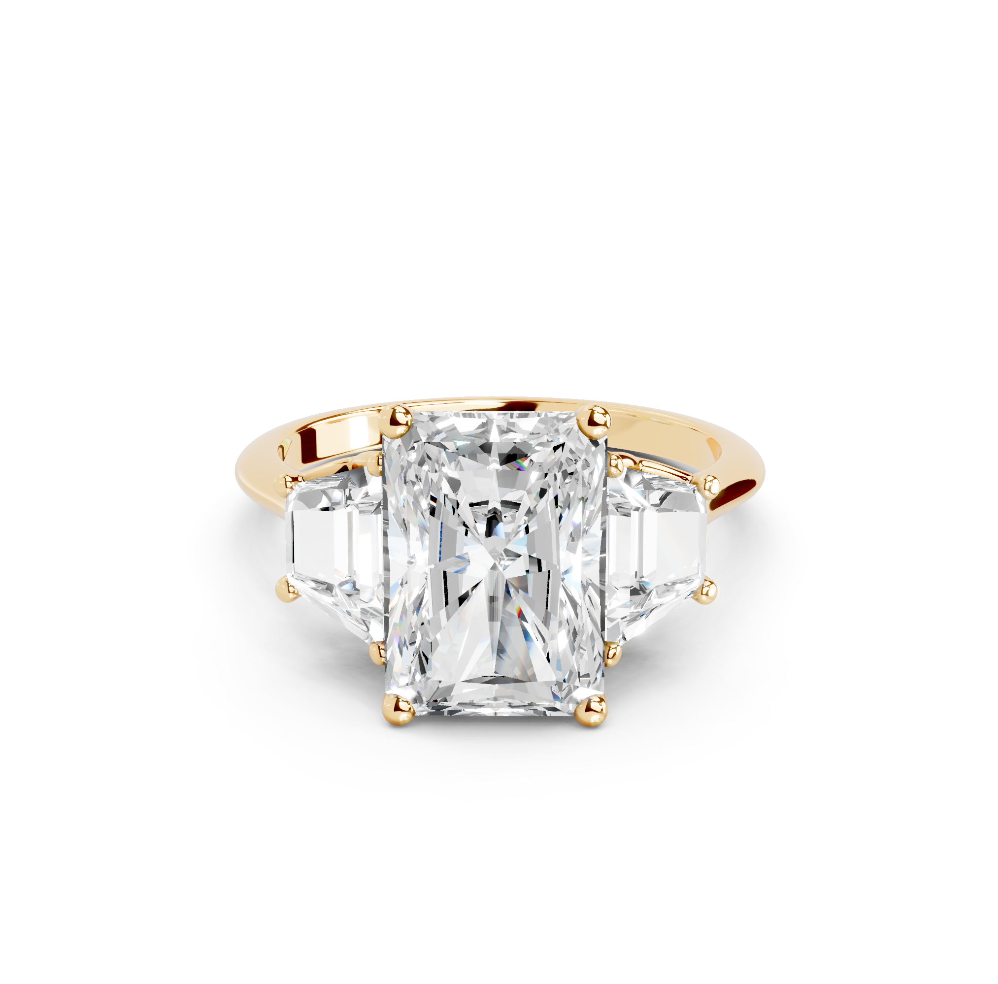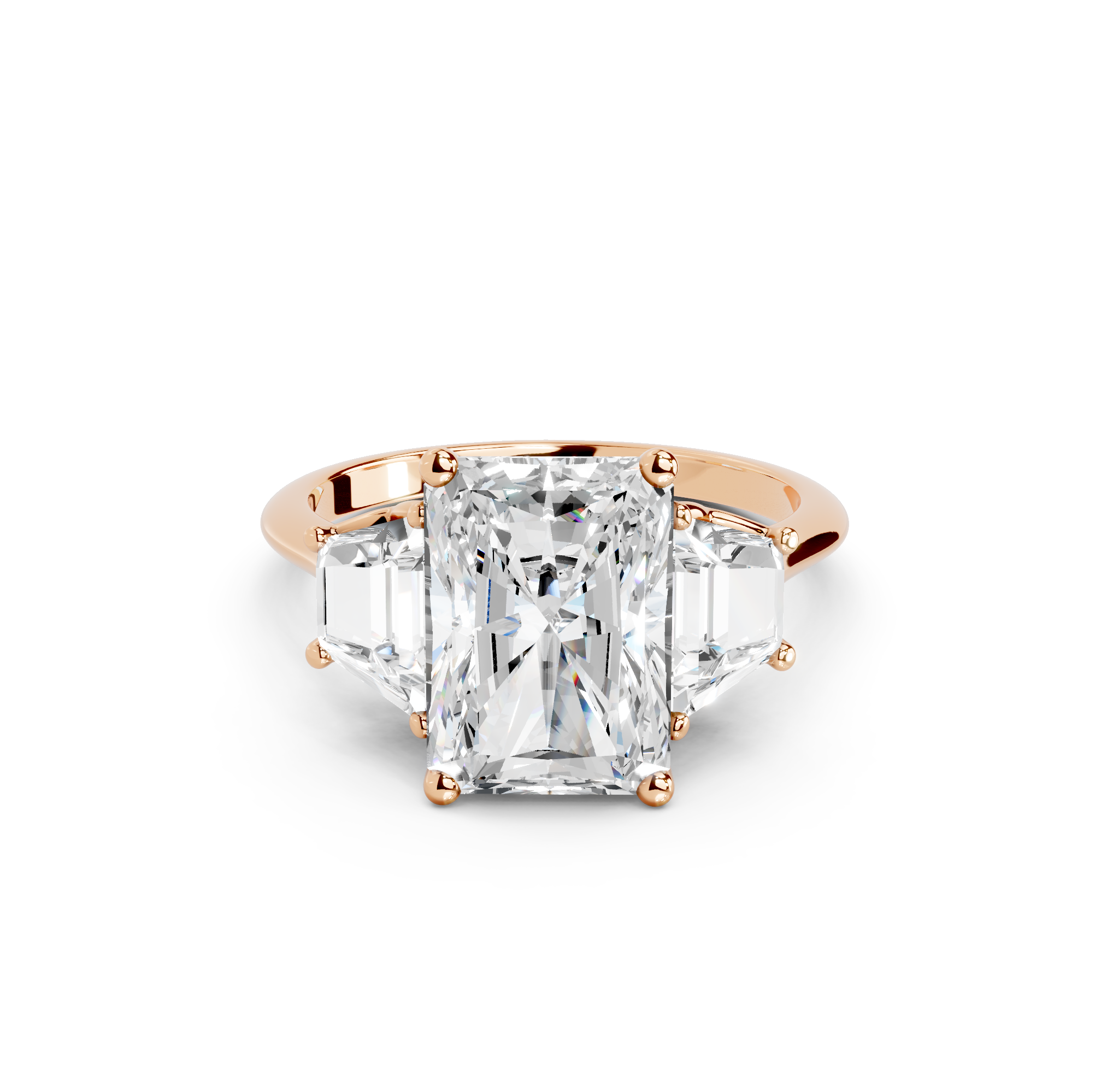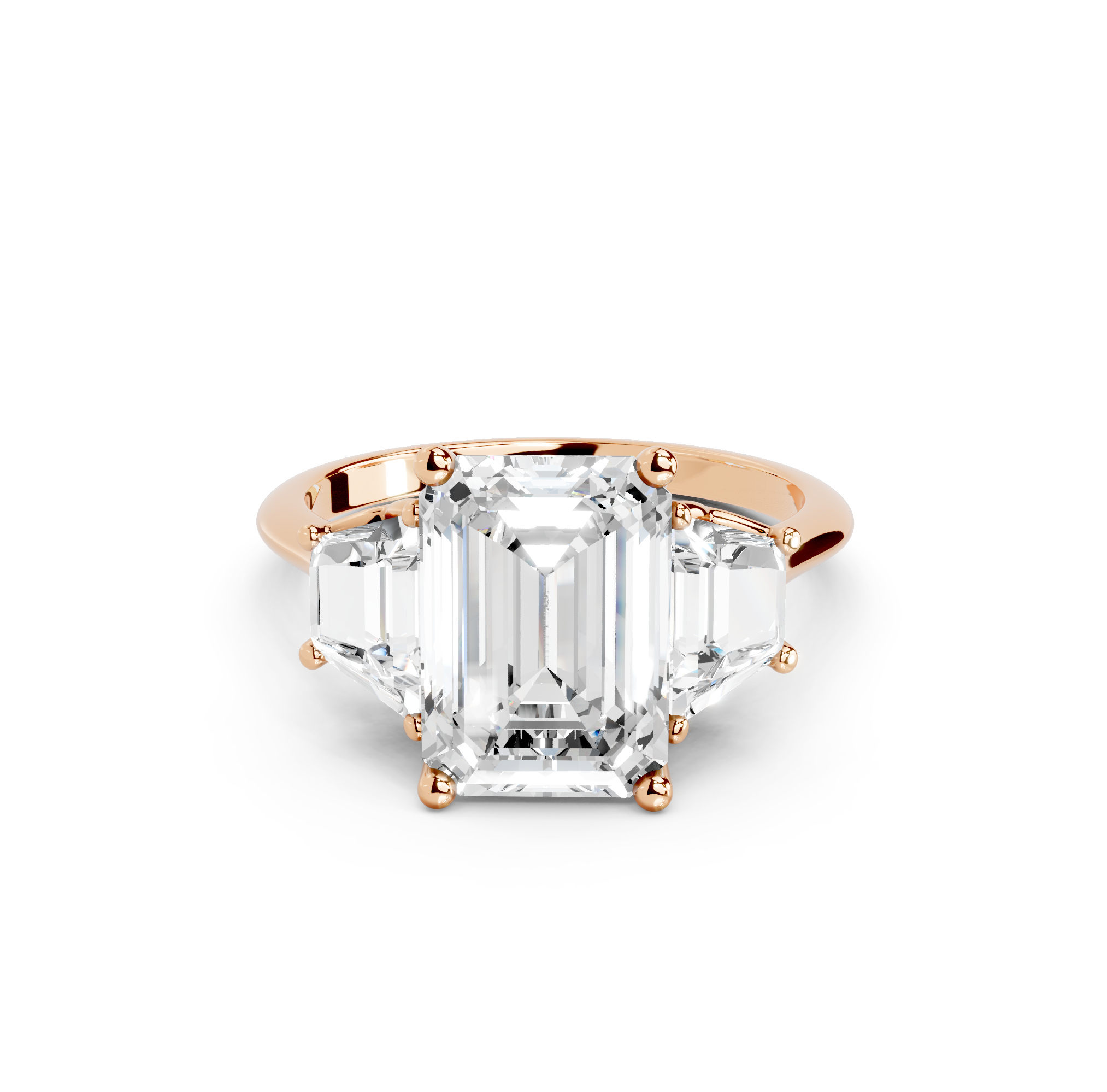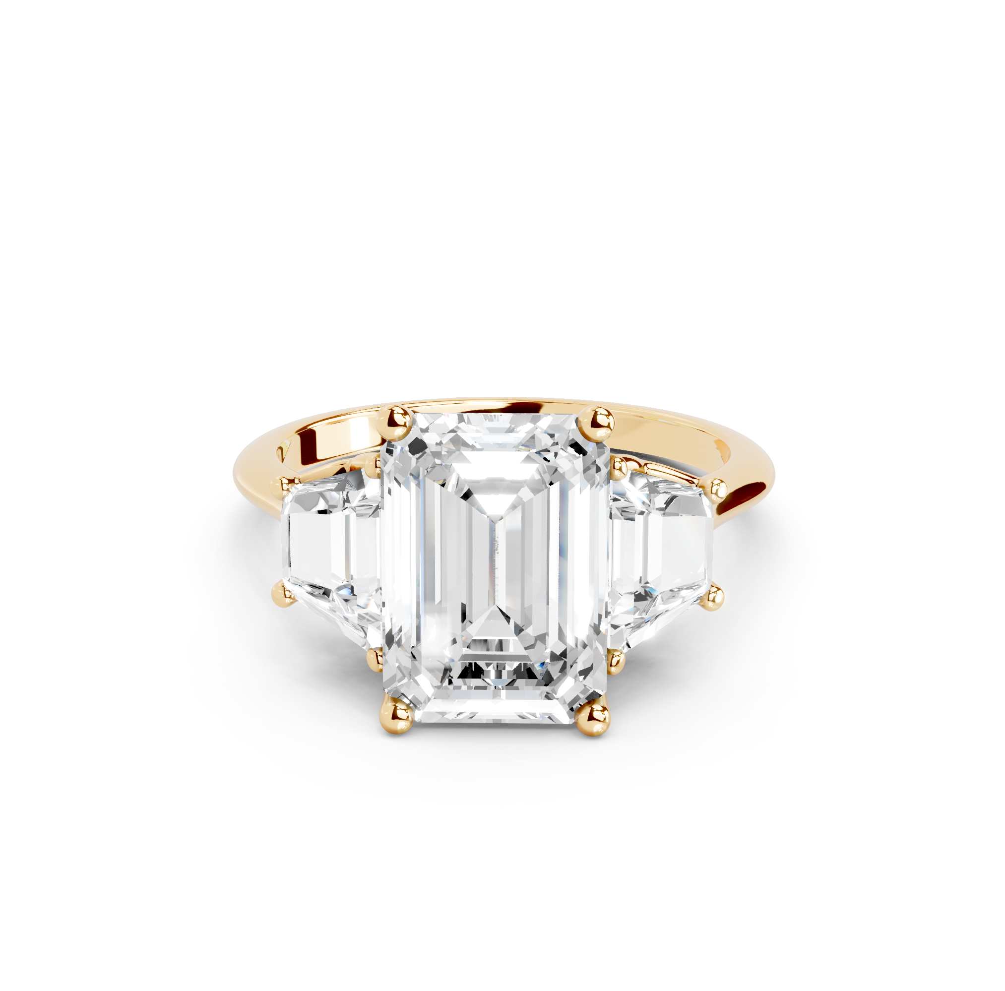 The Sivan tells the story of your past, present, and future with beautiful baguette-cut side stones that frame your choice of center diamond. This Three Stone Baguette Cut Cathedral Engagement Ring brings together clean, geometric lines with a cathedral setting that gently lifts your stones to catch the light from every angle. It's the perfect choice for someone who loves sophisticated style with a touch of architectural elegance.